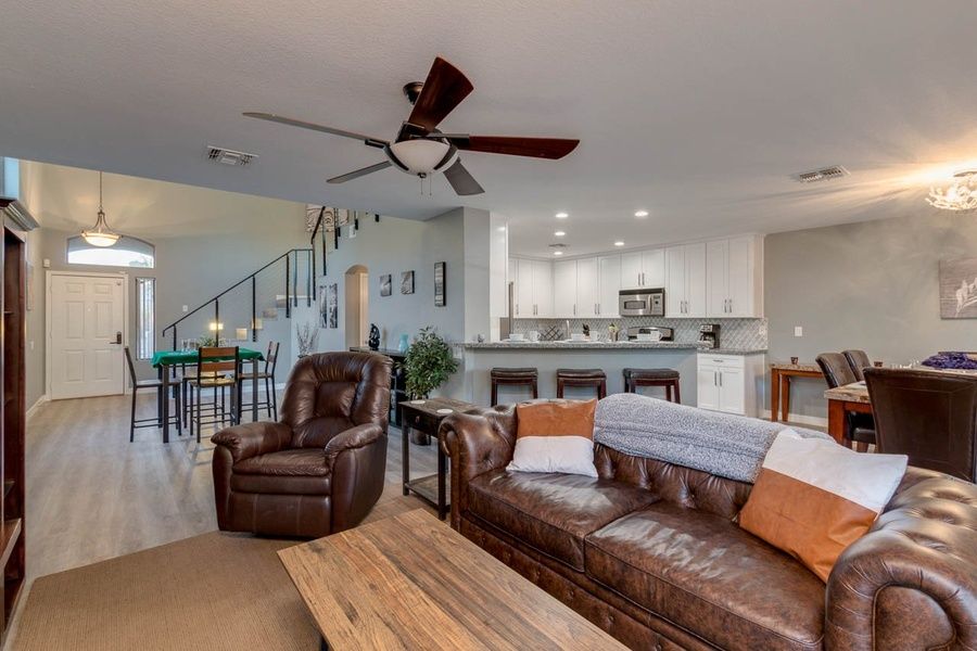 Location, location, location. Perfectly situated at the cross between highway 101 and highway 51. All of Metro Phoenix is at your fingertips. Just 10 minutes from the highly desirable Desert Ridge Shopping Center, Restaurants and Marketplace. Step inside the newly remodeled 2 story and the end of a quiet culdesac. The living room/game room is first as you enter with the cozy family room and open concept kitchen and dining area toward the rear of the home. Sit back and relax and watch the game in your leather recliner while enjoying visiting with family and friends. The kitchen with breakfast bar can accommodate more for entertaining or just hanging out while preparing a meal. The kitchen is equipped with everything you will need including a large pantry and serving pieces for indoor and outdoor dining. The downstairs also features a large laundry room and half bath. fast WIFI and Cable TV throughout the home. There is also an outlet in the garage that you can plug your EV charger into. Just bring your charger and PLUG RIGHT IN! Open up the arcadia doors to the gorgeous backyard. The sparkling heated pool and waterfall make this a soothing place to play and catch some rays. Large deck space and plenty of chairs make the Arizona weather something to drink in. Dine alfresco using the BBQ. Head upstairs to the bedroom suites. All bedrooms have TV's and there is a lofted lounge and workspace for gaming, working from home or just keeping in touch while in Arizona. The master in the rear of the home has a queen bed and large spa bath with an elegant walk in shower and giant walk in closet. Down the hall are the 2 guest bedrooms one with a queen and the other with two twins, these share the hall full bath. Perfect for relocation, catching a game during spring training, shopping, dining, hiking or anything Arizona has to offer. Super easy to call this home base with lots to explore. Book today. We can't wait to meet you. Elite Weather Pool Heater Guarantee: Splash. Thinking of booking November-April? The weather in Arizona can be quite volatile this time of year. There may be soaring heats over 100 degrees or temps that can drop below 50 degrees. This home is equipped with a heat pump, reel and cover. The heat pump that is responsible for heating the pool is at full efficiency if the weather stays above 50 degrees allowing the pool to get to a comfortable swimming temp of 85 degrees. Rest assured; we are looking out for you. Should you want the pool heated, please book with that option now. The pool heat fee is optional, but please let us know if it is your intention to swim. As your reservation date approaches, we will be in touch should we find the temps heading below 50 degrees (approximately 1 week before arrival) and you can make a final decision if you wish the pool to be heated based on weather conditions. We can refund the pool heat fees should you be concerned about not being able to enjoy this amenity as intended. This pool is equipped with a heated pool and pool heating is optional. The cost for pool heat is $65 per day. Should the home be equipped with a spa or hot tub, the cost to heat the spa or hot tub is included in the rental amount year round. City Code Enforcement: As part of our commitment to being good neighbors, occupancy limits and quiet hours (9pm-8am) are strictly enforced. No speakers or sound systems will be provided for use in our properties. Violation of any noise ordinances will be subject to fines that can reach up to $10,000 per violation. Events or parties are not allowed without prior written approval and an additional fee. Any unauthorized parties or events will be shut down and a fine will be assessed. Please inquire for more information about our event policies and fees. Accidental Damage Protection: A non-refundable accidental damage protection plan has been included in the price of your reservation. Under this plan, you will not be held responsible to pay for accidental damage or loss to the rental property resulting from you or others in your party up to $3000. This plan does not cover intentional acts of a guest, gross negligence, or willful and wanton conduct, and/or damages caused by pets. This is a smoke-free property. Violation of the no-smoking policy will result in forfeiture of the security deposit, a $300 smoking fee, and liability for any fire or property damage costs. Air Conditioning: Please note A/C cannot go below 70 degrees as this freezes out the units and causes issues. For stays of over 30 nights, an electricity cap has been determined as presented in your rental agreement. 24/7 Care for our Guests. We are always available to you through text and phone, as well as 24 hour Concierge Service! We report and prosecute all Credit Card Fraud. Arizona Transaction Privilege License #: 21513693 Short Term Rental License #: Elite Vacation Rentals has engaged VacayHome to ensure this listing contains all the information you need and that it is easy for you to book via search engines & online channels. VacayHome is connected directly to the property management system used by Elite Vacation Rentals which ensures that availability & rates are up-to-date & accurate. When you book, VacayHome processes payment on behalf of Elite Vacation Rentals and a charge will appear on your statement as "VacayHome". VacayHome will send you a confirmation e-mail that contains all the information you need to prepare for your vacation including arrival instructions. VacayHome has a 24 x 7 team to assist you with any questions or concerns you may have prior to arrival. To access VacayHome, obtain the customer support telephone number or read FAQs, please click on the links at the bottom of this page.