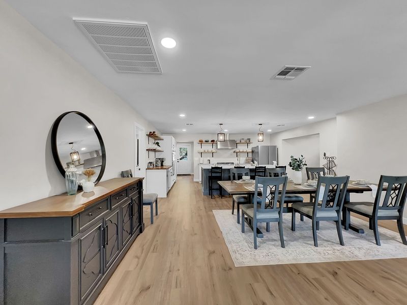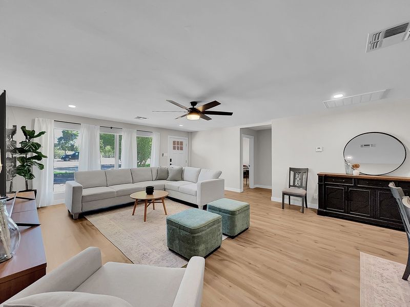 Step into the spacious living room and melt into the plush sectional sofa for movie nights or streaming your favorite shows with our super-fast wifi. Carport parking adds a layer of ease to your travels, and the inside laundry room ensures home conveniences follow you, even when you're miles away.