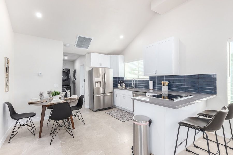 This home is small but mighty. New Listing. Super cute 2/2 within a charming historic district. Every home is special and the neighborhood is family friendly for sure. Step inside to the fully remodeled home with a great kitchen and everything you would need to prepare a meal. Sit up at the breakfast bar or each in the kitchen nook. The attached living pace has a sofa with a chaise and large TV for relaxing. It also doubles as a work space with a desk for working from home or just a spot for your laptop. The split bedrooms are perfect for sharing the space. Toward the front of the home is bedroom 2 with a large closet and twin daybed with a trundle. Can easily sleep 2. The 2nd bath is just off the kitchen and has a gorgeous shower. The master in the rear of the home has a king sized bed, television and en-suite bath and walk in closet. There is a back door off the leading out to the massive backyard. Washer and Dryer are in the home as well as super fast wifi. Be the first to call this a home away from home. No garage at this one, but there is ample parking onsite, behind the gates or in the driveway. Perfect for relocation, traveling nurses or just a get away to the heart of Phoenix.