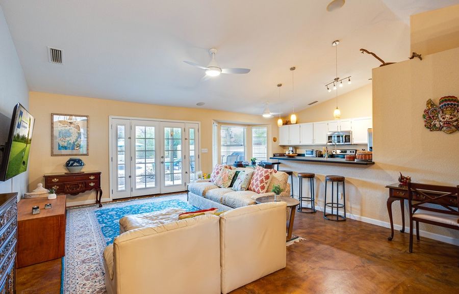 The living room and dining room have a special style that you are sure to enjoy. The super comfy sofa also is a queen sofa bed for extra sleeping. There is a 65" TV that can been seen from every corner of the great room perfect for watching a movie or a sporting event. The bedrooms are down the hall. The Primary Suite is in the rear of the home and features a king bed with quality linens, a television, vanity and reading nook. The bath is luxurious with a huge walk in shower and double sinks. The 2nd bedroom has a queen bed and ample closet space and the 3rd bedroom comes complete with a double bed and again, ample closet space.