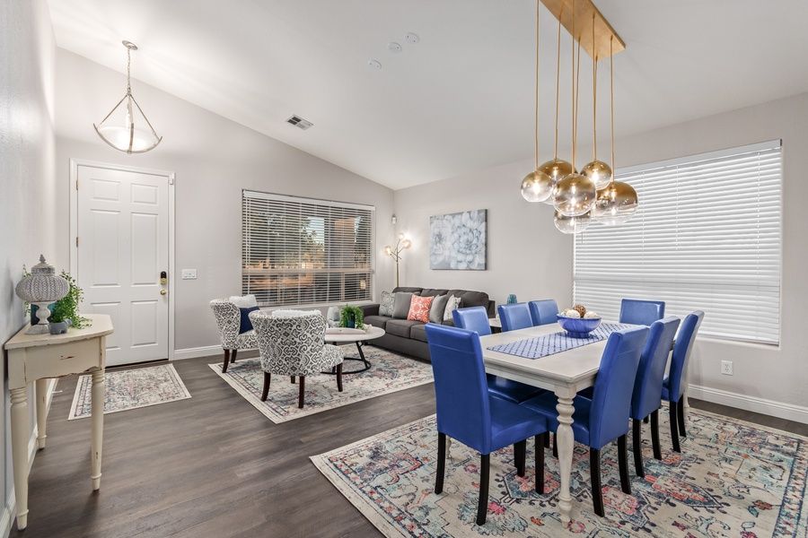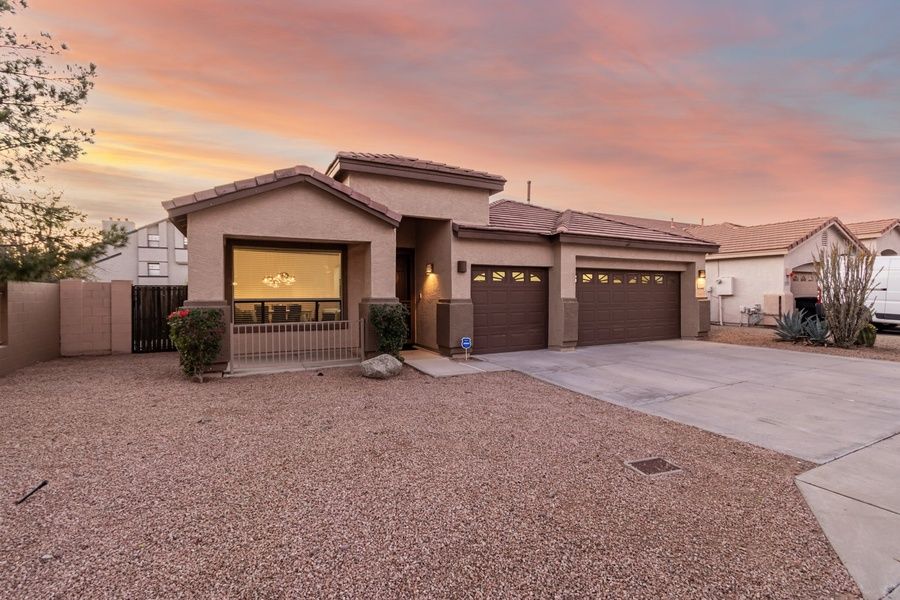 Look no further, this 4 bedroom stunner in Mesa is just what you have been looking for. Corner lot, resort backyard and close to everything metro Phoenix has to offer. Step inside and feel welcomed by this quaint living and dining room combo. Quiet and tastefully decorated with contemporary flair. Just beyond the living room is the highly updated kitchen and family room great room. This is a super-sized space with room for everyone. One of the largest and most inviting kitchen islands in all of Arizona. Seating, entertaining, preparing a meal and more are easy around this centerpiece of the home. Tons of storage, a walk in pantry, stainless appliances and everything you could need to cook up a storm. The attached family room has a massive reclining sectional and smartv so everyone can watch the game or a movie. The great room looks onto the resort backyard, more about that later.