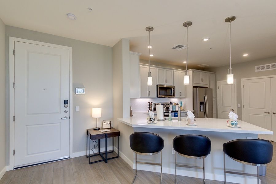 This RESORT Condo is highly upgraded, amenity-rich, and done with a modern style. This Security Building has safe underground parking and has Super easy access to 10, 202, 101 and a short 20 minutes to Sky Harbor Airport. The central location is close to most everything in the Phoenix metro area. This spacious 2 bedroom 2nd-floor unit has a canal view to the east from the master. The condo is elevated on the third floor and the patio looks the north to the mountains. This is your own private outdoor living area and relaxing paradise feel. The stylish contemporary furniture includes, a dining table/chairs for 4 to help you relax, and an outdoor living room to entertain and enjoy the weather. The Kitchen provides an open floor plan to the living room with 4-star quartz breakfast bar and all the cooking utensils for gourmet cooking inside and out. The living room provides stylish furniture to kick back and enjoy your 4K 65” TV. Your full-size laundry room and office area completes the easy living feel. The bedrooms are very spacious and have been furnished with beautiful bedroom suites of furniture. The high-end king mattress is super plush with cool touch gel memory foam and the luxurious linens will make you feel pampered and give you a great night's sleep. You also have a 4K 50" TV for watching TV in bed. The designer artwork throughout the condo creates a sense of serenity and ambiance to relax! The master bath has quartz double sinks with a walk in massive shower and giant closet. This home is equipped with high speed wifi and DirecTv. The 2nd master also has a king bed and a television and an elegant bath with tub and shower combo. The RESORT offers a beautiful heated pool area with cabanas, BBQ/ kitchens and fire pits! The clubhouse is spectacular with a full indoor kitchen for entertaining as well as a fully equipped gym, yoga studio, shuffleboard, pool, steam rooms and more. It even has a business center for your convenience The entire property has smart technology, high-speed internet and 200 channel TV in every unit. The Cays is truly the choice for the discriminating guest! The Cays at Downtown Ocotillo is literally right across the street from great restaurants, coffee shops, shopping, and walking paths along the canals. It's a great spot for meeting friends or making new ones! Just outside the Cays and downtown Ocotillo you can admire the works of public art by local artists while you take a stroll through a century's worth of architectural hotspots. Enjoy live performances by the Chandler Symphony Orchestra or partake in the food and cultural festivals. Activities abound, whether it is shopping at the Chandler Fashion Mall, Baseball Spring training, NASCAR, IRONMAN triathlon training, or cruising the 327 miles of bike lanes and paths, there is something for everyone here...and Oh by the way, did we mention the golf? It is a GOLFERS PARADISE here. Guests at the Cays receive a resort card providing discounts and preferred pricing at local favorites. This fantastic resort is owned by Phil Michelson and offers rolling hills and tree-lined fairways that is a great alternative to the typical desert courses in the area. The amenities and facilities are awesome and compare to many of the private clubs in the area. Ocotillo is recognized as one of the finest daily fee facilities in the country and routinely receives 4-star ratings from Golf Digest's annual guide. It was also voted as one of the “Three Must Play” courses in the area including Troon North and the Boulders...pretty good company! Pickleball now is public and available in Ocotillo. Welcome to your spectacular Cays paradise retreat! 30 Night Minimum Rental. Elite Vacation Rentals has engaged VacayHome to ensure this listing contains all the information you need and that it is easy for you to book via search engines & online channels. VacayHome is connected directly to the property management system used by Elite Vacation Rentals which ensures that availability & rates are up-to-date & accurate. When you book, VacayHome processes payment on behalf of Elite Vacation Rentals and a charge will appear on your statement as "VacayHome". VacayHome will send you a confirmation e-mail that contains all the information you need to prepare for your vacation including arrival instructions. VacayHome has a 24 x 7 team to assist you with any questions or concerns you may have prior to arrival. To access VacayHome, obtain the customer support telephone number or read FAQs, please click on the links at the bottom of this page.