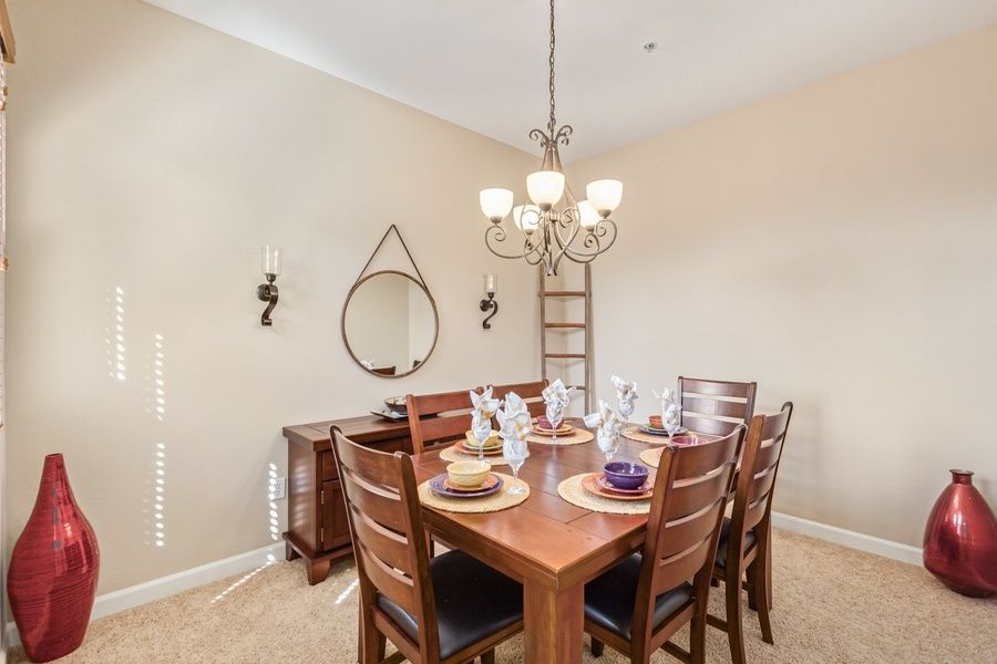 Don't miss this amazing townhouse in the highly desirable Fulton Ranch neighborhood of Serenity Shores. This 30 night minimum gated community offers lush landscaping, waterways, walking trails, a HEATED pool and spa and a gym. The townhouse itself is tastefully appointed and is 2nd floor living with no one above you. Step inside and you will be met with a staircase taking you up to one story living area. An open concept kitchen dining and living room await. Anchored by a large smartv and fireplace. Comfy sectional seating for everyone is available to catch a movie or a sporting event. The large breakfast bar provides extra seating for the kitchen and living area. The kitchen is spacious with everything you will need to make a meal in or prepare for a BBQ in the patio/balcony. The dining room seats 6 and is adjacent to the kitchen.