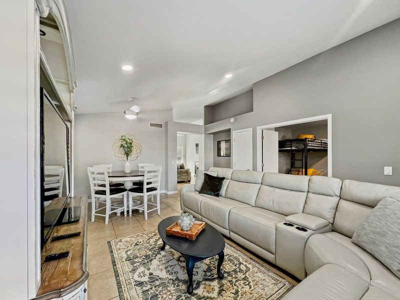 Welcome to your dream home in Surprise! This stunning 4-bedroom, 2-bath gem is waiting for you to make unforgettable memories. Situated in a prime location close to everything, including shopping, dining, parks, MLB baseball, and stadiums, this home offers the ultimate convenience and endless entertainment options. Step inside and immediately feel the warmth and comfort of this inviting oasis. With 2 comfy living rooms featuring plush reclining furniture a fireplace and TV's in every room, relax and unwind after a long day of exploring the vibrant city of Surprise. And did we mention that the home sleeps 13? That's right, bring your friends and family along to experience the magic! The backyard is a true paradise, complete with a sparkling pool surrounded by a safety fence for peace of mind. Imagine barbecuing delicious meals at the outdoor BBQ area and enjoying al fresco dining with a scenic view. As the sun sets, gather around the fire pit to share stories and laughter with loved ones. Love to cook? You're in luck! The kitchen is fully stocked with everything you need to whip up culinary delights. Whether you're enjoying a quick bite at the breakfast bar or hosting a dinner for 12 in the elegant indoor dining area, this home has it all. The primary bedroom is a haven of relaxation with its luxurious spa bath and walk-in shower. Drift off to sleep on the king-sized bed and wake up refreshed and ready for a day of adventure. The additional bedrooms offer ample space and comfort, with queen beds that guarantee a good night's rest. Need extra sleeping arrangements? The bunk room is equipped with double over double bunks and a twin over double bunk, accommodating everyone's needs. Don't miss out on this fully remodeled home, meticulously designed to provide you with the best vacation experience. Book your stay now and make lasting memories in Surprise. Your dream home awaits! Pool provided as an amenity and is NOT HEATED. Sorry No Pets Allowed. Surprise What's it like to visit-and-play in a city named Surprise? Our sprawling suburban city is located in the northwest Phoenix Metropolitan area, just 45 minutes from Downtown Phoenix and the Sky Harbor International Airport. Residents and visitors enjoy the small-town feel with big-city amenities that only Surprise can offer. From community celebrations, art galleries and cultural experiences, to regional festivals, our multigenerational city has something for everyone. Surprise is home to the southwest's largest tennis and racquet complex, professionally designed golf courses, an urban fishing lake and aquatic centers. Each spring, our population explodes when we welcome the Kansas City Royals and Texas Rangers during the Cactus League Spring Training! Voted 2018's Number 1 Spring Training Stadium in Arizona by USA Today*, Surprise Stadium offers the ultimate baseball fan experience complete with up-close and personal interactions with your favorite major leaguers! The stadium hosts minor league teams, national high school and college baseball tournaments, USA Professional Baseball teams, events and more during the Major League Baseball regular season. Surprise is bounded by the expansive White Tank Mountain range to the west and the beautiful Sonoran Desert and Lake Pleasant Regional Park to the north. Outdoor enthusiasts will enjoy that hiking, fishing and camping are within a 20-minute drive when living-in or visiting Surprise. Our contiguity to the Phoenix Metropolitan area provides residents and visitors opportunities to experience all that a bustling metropolis has to offer including world-renowned shopping and dining, concert and sports venues, theatres, adventure excursions and more! Elite Vacation Rentals has engaged VacayHome to ensure this listing contains all the information you need and that it is easy for you to book via search engines & online channels. VacayHome is connected directly to the property management system used by Elite Vacation Rentals which ensures that availability & rates are up-to-date & accurate. When you book, VacayHome processes payment on behalf of Elite Vacation Rentals and a charge will appear on your statement as "VacayHome". VacayHome will send you a confirmation e-mail that contains all the information you need to prepare for your vacation including arrival instructions. VacayHome has a 24 x 7 team to assist you with any questions or concerns you may have prior to arrival. To access VacayHome, obtain the customer support telephone number or read FAQs, please click on the links at the bottom of this page.