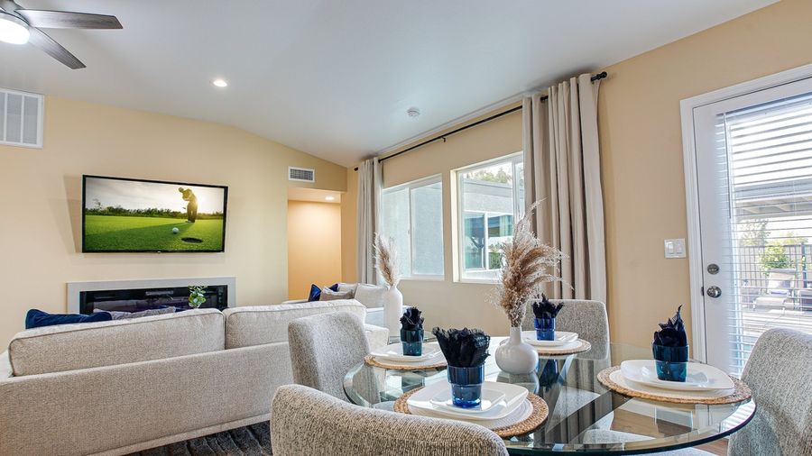 This modern three bedroom vacation rental offers a home away from home. Enjoy relaxing sunsets in the backyard oasis with a sparkling pool, comfortable seating and plenty of entertainment options. Plus, our pet friendly rental welcomes your furry friends!