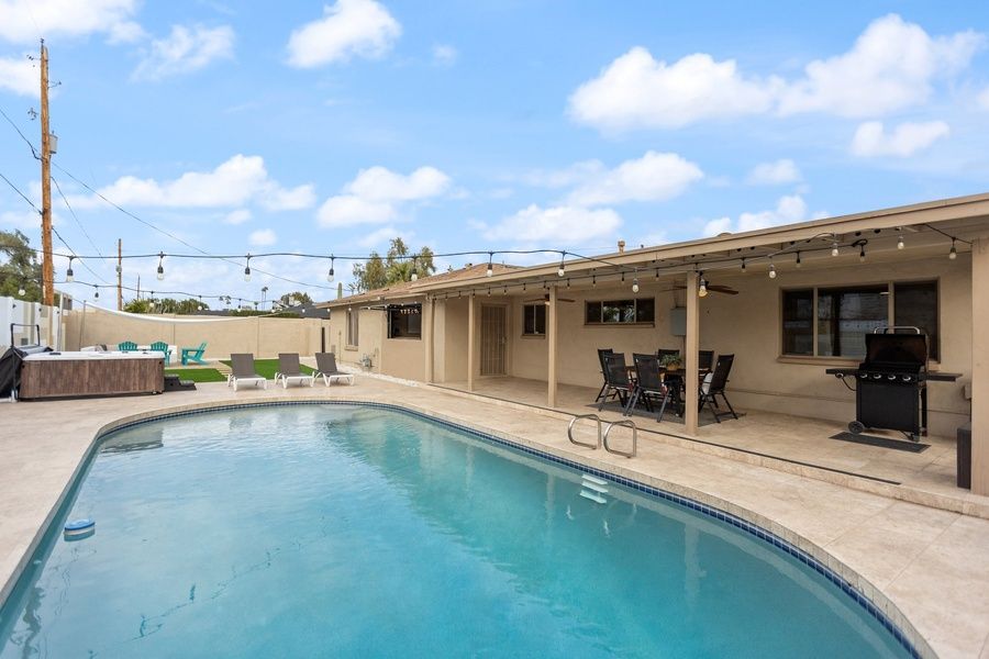 Amazing Old Town Scottsdale Home, recently renovated with updates including new flooring in the living room, bedrooms and new game room. This home is located ~six minutes from Old Town Scottsdale which has some of the best restaurants and bars in the area. Also within 15 minutes of Spring Training Baseball, Top Golf, Casinos, Waste Management Phoenix Open, Golf, Airport, Kierland Commons, 101 freeway and much more! Home is very comfortable with fresh furnishings. FANTASTIC backyard that features a large pool, hot tub, covered patio, fire pit, BBQ grill, loungers, and massive putting green. Everything you need to enjoy a Five Star Stay! The Space: This excellent home has been furnished to an impeccable standard. It's the ideal retreat for a relaxed & comfortable stay. We believe it's the ultimate location to experience Scottsdale the way it should be. Get ready to get inspired! Ideal for large groups searching for a convenient “home away from home”; with access to their own private pool, hot tub and amenity filled backyard. It also suits groups of friends & family looking for the go-to Scottsdale location. Great for people looking for an exquisite experience. Comfortable, spacious, and convenient. The family room, kitchen, dining room provide plenty of space to spread out and entertain. The new game room will be a hit with a ping pong table, large smart TV, corn hole game and couch with plenty of space to spread out. We uphold the highest standards in having our property cleaned by professional cleaning companies. We were always focused on spotless and clean, and in current times we have increased this focus. We are sure you will enjoy this home. The home is also equipped with all necessary essentials to have a Five ⭐⭐⭐⭐⭐ Stay: Keurig coffee maker 2 LG Bluetooth Speakers Charging Station Pack n play High chairs We guarantee a private stay. No sharing, no disturbances. All that's left for you to do is relax and settle in after your journey. We look forward to your stay! Bedroom Layout: Master Bedroom: King Bed with Ensuite Bathroom, Tile shower/tub combo. 50” Roku Smart TV. 2nd Master Bedroom: King Bed or 2 Twin XL's. *contact us for arrangements. Ensuite tile shower with separate door to hallway from bathroom. 50” Roku Smart TV. 3rd Bedroom: 2 Full Beds and a few steps to the hall bathroom with tub/shower combo. 50” Smart TV. 4th Bedroom: 2 Twin XL beds, 1 Single over Full bunk bed. 50" Roku Smart TV. Dog Friendly: One dog maximum. $25 per night pet fee Elite Weather Pool Heater Guarantee: Splash. Thinking of booking November-April? The weather in Arizona can be quite volatile this time of year. There may be soaring heats over 100 degrees or temps that can drop below 50 degrees. This home is equipped with a heat pump, reel and cover. The heat pump that is responsible for heating the pool is at full efficiency if the weather stays above 50 degrees allowing the pool to get to a comfortable swimming temp of 85 degrees. Rest assured; we are looking out for you. Should you want the pool heated, please book with that option now. The pool heat fee is optional, but please let us know if it is your intention to swim. As your reservation date approaches, we will be in touch should we find the temps heading below 50 degrees (approximately 1 week before arrival) and you can make a final decision if you wish the pool to be heated based on weather conditions. We can refund the pool heat fees should you be concerned about not being able to enjoy this amenity as intended. This pool is equipped with a heated pool and pool heating is optional. The cost for pool heat is $65 per day. Should the home be equipped with a spa or hot tub, the cost to heat the spa or hot tub is included in the rental amount year round. Scottsdale City Code: Per Scottsdale Revised City Code S.R.C. 18-152(b) - Short-term rentals (1-29 days) have a maximum family size of 6 adults (and their related dependent children). As part of our commitment to being good neighbors, occupancy limits and quiet hours (9pm-8am) are strictly enforced. No speakers or sound systems will be provided for use in our properties. Violation of any noise ordinances will be subject to fines that can reach up to $10,000 per violation. Events or parties are not allowed without prior written approval and an additional fee. Any unauthorized parties or events will be shut down and a fine will be assessed. Please inquire for more information about our event policies and fees. Accidental Damage Protection: A non-refundable accidental damage protection plan has been included in the price of your reservation. Under this plan, you will not be held responsible to pay for accidental damage or loss to the rental property resulting from you or others in your party up to $3000. This plan does not cover intentional acts of a guest, gross negligence, or willful and wanton conduct, and/or damages caused by pets. This is a smoke-free property. Violation of the no-smoking policy will result in forfeiture of the security deposit, a $300 smoking fee, and liability for any fire or property damage costs. Air Conditioning: Please note A/C cannot go below 70 degrees as this freezes out the units and causes issues. For stays of over 30 nights, an electricity cap has been determined as presented in your rental agreement. 24/7 Care for our Guests. We are always available to you through text and phone, as well as 24 hour Concierge Service! We report and prosecute all Credit Card Fraud. Arizona Transaction Privilege License #: 21502087 Scottsdale Short Term Rental License #: 2024735 Elite Vacation Rentals has engaged VacayHome to ensure this listing contains all the information you need and that it is easy for you to book via search engines & online channels. VacayHome is connected directly to the property management system used by Elite Vacation Rentals which ensures that availability & rates are up-to-date & accurate. When you book, VacayHome processes payment on behalf