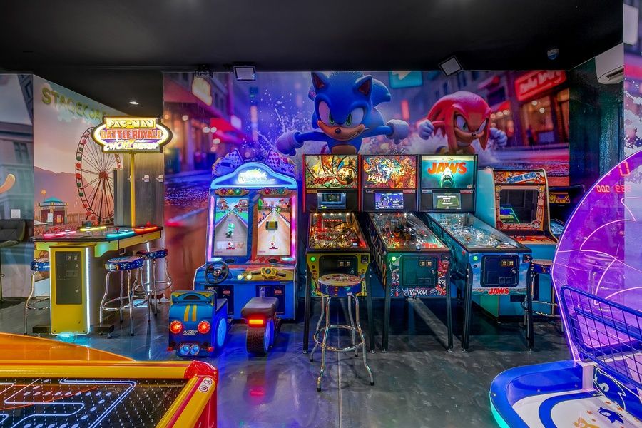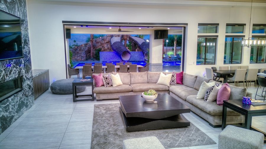 Luxury 7BR/5.5BA oasis sleeps 20, featuring a vast array of amenities including a huge pool & spa, pickleball court, basketball half court, playground, and more. Enjoy spacious living areas, fully equipped kitchen, whole home sound system (indoor/outdoor), and 65” smart TVs in every room. Outside, indulge in recreation with a private pool, playground, and sports courts. Perfect for gatherings, with a sprawling event lawn available for special occasions. Book now for an unforgettable getaway!