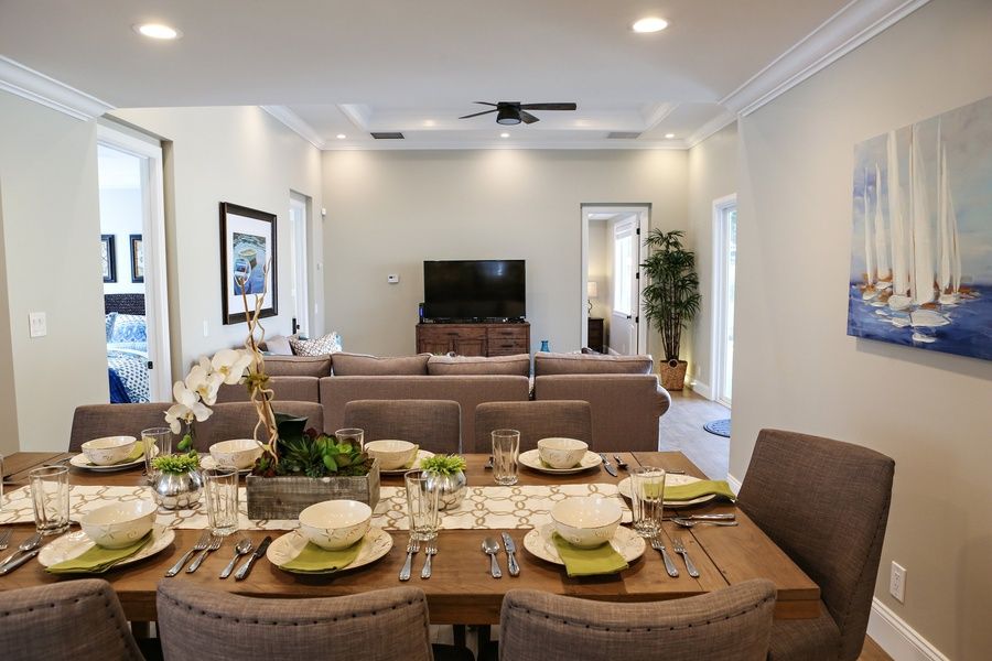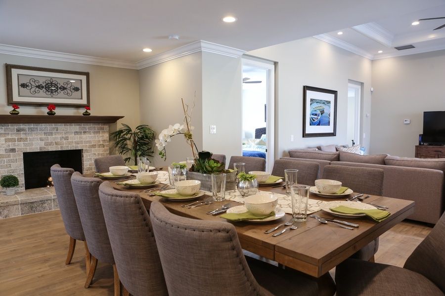 Visit our Beautiful Pool Home, perfectly set up for 4+ families. Our six-bedroom, 4.5-bath home is designer-decorated and upgraded with granite kitchen counters, tiled bathrooms, and wood floors. There are two Cal-King masters, complete with private bathrooms. Two additional Cal-King Beds share a Jack n' Jill bathroom. The last two bedrooms are children's rooms with full-over-full Bunk beds. The children's room shares a hall bathroom with a shower/bathtub. Beautiful open concept main living area with an upgraded kitchen complete with granite countertops, custom paneled cabinetry, and stainless steel appliances: stove/oven, refrigerator, dishwasher, and microwave. The dining room comfortably seats 10, with additional seating at the kitchen countertop bar and breakfast nook. The family room has a large sectional with plenty of seating. The sectional has a queen-size sleeper. Relax in our sparkling pool with Jacuzzi in the rear yard. We monitor and control the temperature for you remotely from our office to make sure it will be on and to the temperature when you arrive. Enjoy our outdoor seating and natural gas BBQ Grill. The full-size washer and dryer for guest use and the half bath are located right off the kitchen. The game room is located in the garage. It has a foosball table, air hockey table, and ping-pong table. In addition, there are strollers, high chairs, pack n-play, and booster seats for infants and toddlers. The Main Living Room has a 60-inch TV with a DVD player. Hi-Speed Wireless Internet is included. The home has central heating and air conditioning. Nice short walk to Disneyland and Anaheim Convention Center, and you can watch the Disneyland fireworks from the yard. This house SLEEPS 15 in Beds and the MAXIMUM OCCUPANCY is 15 AT ANY TIME (this number is the combined total of overnight guests plus day visitors). Maximum Vehicles 4. No RVs, Trailers, or Commercial Vehicles. Minimum Stay 3 Nights No Outside Music of Any Kind per Anaheim Code No Outside noise between 10 pm and 9 am per city code. You must be inside during this time. Pricing includes a mandatory pool/jacuzzi fee. The pool is heated to 82, and Jacuzzi to 102 *All Major credit cards and checks are accepted. No cancellation refunds within 60 days of arrival. We recommend you purchase travel insurance. A signed contract, guest list, and ID are required at booking. Featured Amenity: Proudly partnered with a dependable delivery service company. Introducing an exclusive pre-arrival grocery stocking/delivery service designed to eliminate any need for chores during your stay. Enjoy the convenience and luxury of having fresh, high-quality products delivered directly to your rental before you even arrive - beach chairs, umbrellas, etc. Items are even appropriately put away in the home refrigerator & cabinets, and photos are sent to you at delivery. They even offer e-bikes and other services. *Delivery charges and service fees will apply. All homes are cleaned per CDC guidelines and fogged with a hospital-grade disinfectant. EFFECTIVE IMMEDIATELY: These houses are for overnight sleeping purposes ONLY. You CAN NOT rent these houses for ANY type of gathering or event. If you reside within 50 miles of this house, there will be an extra $500 security deposit to ensure city rules and regulations are kept. In addition, the homes are protected with Security Cameras. There are NO inside cameras. All rentals booked within 2 weeks of arrival: Extra screening/background checks and proof of payment are required. We reserve the right to cancel any reservation that is; suspicious of fraudulent behavior, determined to be made under any false pretenses, or for any purposes that would violate city/state or federal law. We also reserve the right to cancel the reservation(s) of ANY booking with technical error(s) that includes but is not limited to; pricing, website difficulties, or any other issue that may arise in the booking stage of a reservation. Managed by Anaheim Vacation House City of Anaheim House Permit/Business License# REG2015-00186 Keywords: Single Family Home, Pool, Anaheim, California, Disneyland, Orange County, House, Convention Center Anaheim Vacation House has engaged VacayHome to ensure this listing contains all the information you need and that it is easy for you to book via search engines & online channels. VacayHome is connected directly to the property management system used by Anaheim Vacation House which ensures that availability & rates are up-to-date & accurate. When you book, VacayHome processes payment on behalf of Anaheim Vacation House and a charge will appear on your statement as "VacayHome". VacayHome will send you a confirmation e-mail that contains all the information you need to prepare for your vacation including arrival instructions. VacayHome has a 24 x 7 team to assist you with any questions or concerns you may have prior to arrival. To access VacayHome, obtain the customer support telephone number or read FAQs, please click on the links at the bottom of this page.