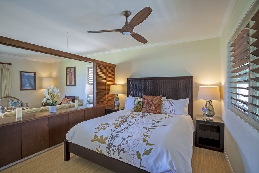 Escape to Paradise at Hanalei Colony Resort C4, in north shore Kauai's only true beachfront resort, recently voted one of Travel + Leisure's top 20 favorite resorts. These unique Hanalei vacation rentals are steps away from the secluded sandy beach that fronts the property! The Hanalei Day Spa is just across the parking lot if you're looking to pamper yourself. Restaurant, coffee shop/gallery are onsite. Whether you're a nature enthusiast or seeking relaxation, our Kauai vacation rentals at the Hanalei Colony Resort offer it all. Explore pristine Hanalei Bay, take a hike along the world-famous Na Pali Coast, or simply unwind on the secluded beach steps from your door. It's the perfect Kauai vacation rental for proposals, honeymoons, anniversaries, and other romantic occasions. Experience the ultimate tropical getaway where uncrowded beaches, lush rainforests, and breathtaking views await you. Hanalei Colony Resort C4 boasts a prime beachfront location, offering you direct access to the secluded white sand beach that fronts the property. This two-bedroom, one-bathroom condo is designed with your comfort in mind. The open-concept living area is tastefully decorated and features all the amenities you need for a relaxing stay. The fully-equipped kitchen allows you to prepare simple meals or dish up your favorite take-out, and the dining area seats 4. The main bedroom bedroom includes a plush king-size bed and tropical decor. Fall asleep to the gentle ocean breeze and wake up rejuvenated for another day in paradise. The second bedroom includes a day bed so you are able to sleep a third person comfortable. If you prefer, use it as an office, the desk is a perfect work station - just make sure to close the blinds so you won't be distracted by the view! Please note that the bedrooms can be closed off from the living area with wooden louver doors, which provide visual privacy and preserve cooling airflow throughout the apartment, but do not serve as a barrier to sound. Hanalei Colony Resort embodies authentic Hawaiian charm. in an unspoiled secluded setting. From hiking the Napali Coast to exploring nearby Limahuli Gardens, Kauai offers a wealth of outdoor activities for nature enthusiasts. Hanalei Bay is famous for its surf breaks, making it the ideal spot to catch some waves or learn to surf with local instructors. Experienced surfers will want to take advantage of the resort's close proximity to Canons with its world class waves. If you'd like to explore the Hawaiian culture you can attend a luau, explore historic sites like the Waioli Mission House, or learn the art of hula dancing. The charming town of Hanalei is 15 minutes away, with boutique shopping and a variety of dining options, from casual beachside fare to gourmet cuisine. As a guest at a privately managed unit in the resort, you are invited to make full use of all of the facilities such as swimming pool, jacuzzi, barbecue area, and guest laundry room. Certain services provided by the resort staff are not available to private renters, such as the towel exchange window, and the resort shuttle. While wonderfully furnished and right next to the beach, please know that the development was built in simpler times. The units are smaller and have kitchens to match. Some normal amenities will be absent given the space and purposeful attempt to honor the simplicity of earlier times: you won’t find a dishwasher or washing machine in any of the units (there is a laundry room on the premises), and most units have no televisions (though wifi is available for those of us who can't escape work or want to stream our favorite shows). As with most homes on Kauai, this vacation rental is NOT air conditioned. This is an upstairs condo so you need to be able to go up and down stairs. There are no elevators. Although this home has internet, the speed and reliability cannot be guaranteed due to the remote location and the service being provided by a third-party. Hawaii Vacation Rental Identification Number TA-209-008-8960-02 Kauai Kahuna Vacation Rentals has engaged VacayHome to ensure this listing contains all the information you need and that it is easy for you to book via search engines & online channels. VacayHome is connected directly to the property management system used by Kauai Kahuna Vacation Rentals which ensures that availability & rates are up-to-date & accurate. When you book, VacayHome processes payment on behalf of Kauai Kahuna Vacation Rentals and a charge will appear on your statement as "VacayHome". VacayHome will send you a confirmation e-mail that contains all the information you need to prepare for your vacation including arrival instructions. VacayHome has a 24 x 7 team to assist you with any questions or concerns you may have prior to arrival. To access VacayHome, obtain the customer support telephone number or read FAQs, please click on the links at the bottom of this page.
