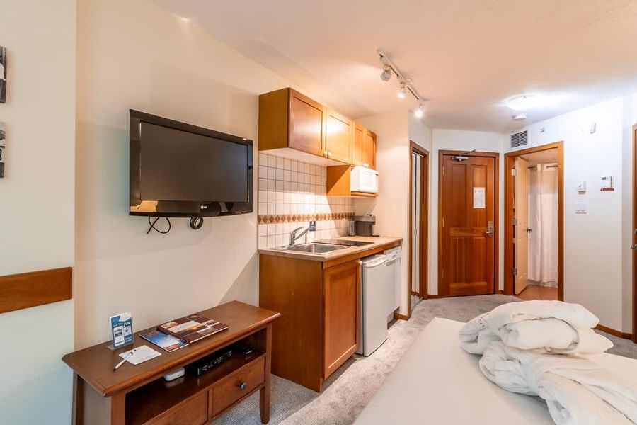 Embark on an enchanting mountain retreat at Cascade Lodge in Whistler Village with our charming studio suite, where comfort and convenience converge for an unforgettable escape. Discover serenity in our spacious studio, boasting a sumptuous bed promising blissful slumber. Awaken to a world of adventure and mountain vistas that will set the tone for a memorable day.