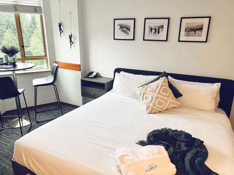 Embark on an enchanting mountain retreat at Cascade Lodge in Whistler Village with our charming studio suite, where comfort and convenience converge for an unforgettable escape. Discover serenity in our spacious studio, boasting a sumptuous bed promising blissful slumber. Awaken to a world of adventure and mountain vistas that will set the tone for a memorable day.
