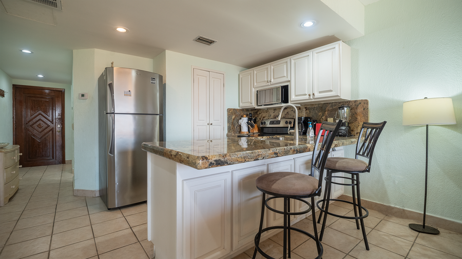 The terrace has a table and chairs. The terrace would be the perfect spot to kick back and relax with a cold beer or frozen margarita while you feel the warm ocean air kiss your skin. You should definitely dine outside in the evenings so that you can witness the world's most beautiful sunsets. The condo comes with a washer, dryer and ceiling fans throughout. You will be elated with the amenities and experience you have in this condo inside the Princessa de Penasco! Book Your trip to paradise now!
