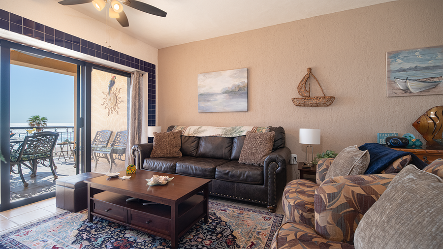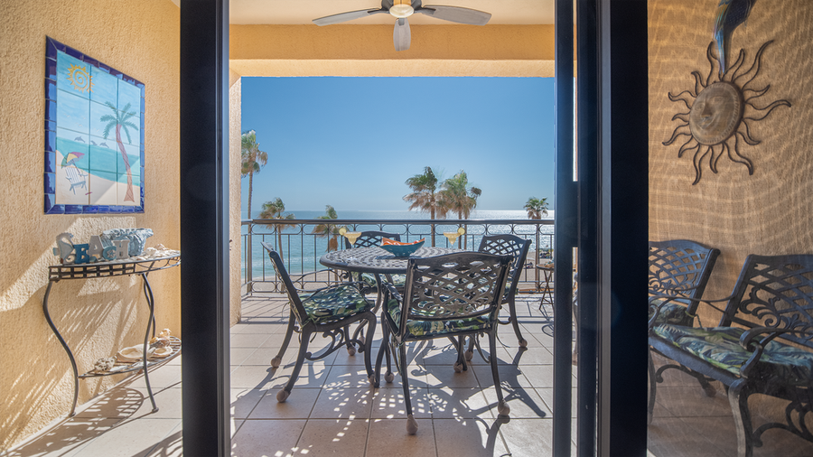 With a patio that puts you right above the Princesa Swim up Manta Bar, and very close to the beach, this two-bedroom unit is a great choice for a Rocky Point weekend getaway.