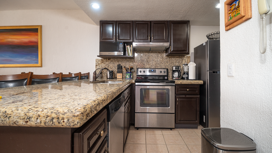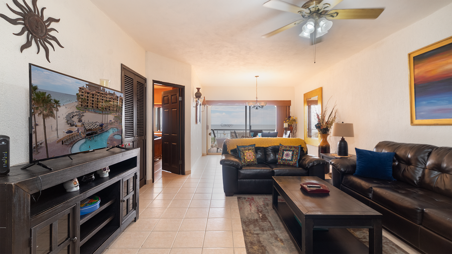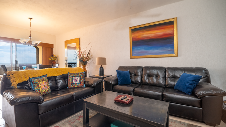 The Princessa de Penasco is a beachfront resort with many wonderful amenities. The resort was designed to emulate the shape of an arc. The arc is made up of five yellow towers that have a beautiful Old World Mexican courtyard in the center. The courtyard has several red brick walkways with flower lined grassy areas shaded by palm trees. The resort has premium amenities like 3 swimming pools, a Jacuzzi spa, and palm frond umbrellas above lounge chairs in the sand. The resort also includes a sand volleyball court where you can challenge your neighbors to a game and an ocean view fitness center that has everything you need to stay in shape. The resort has an on-site restaurant and bar called Collins. Collins has wonderful daily food and drinks specials. This is a very safe resort with 24-hour on-site security. This is a very beautiful 2 bedroom and 2 bathroom unit on the 4th floor of the E Tower. This condo is oceanfront with accommodations for 6 guests. In the living room, there are two scrolled end fabric sofas in a deep beige with floral patterned pillows. The room has two glass top end tables both with a metal lamp and a matching glass top coffee table. Across from the sofas, there is a media unit furnished with a large TV, DVD, VCR and CD player. In addition, the condo is also equipped with high-speed wireless internet so you can check your email or surf the internet. You can get to the terrace through a set of sliding glass doors off the living area. In the dining area, there is a large vertical gold-rimmed mirror with a round wood top table and four matching chairs. A ceramic chandelier is hung above the table to light the area in the evening. Next to the gold mirror is a dark plaster pillar adorned with a statue of three swimming dolphins. In the kitchen, there are ceramic tiled countertops with fully loaded cabinets and black and white appliances. In the kitchen, you will find everything you need to feel as if you are cooking dinner in your own home kitchen. The kitchen has a counter bar with stools for additional seating or casual dining. In the master bedroom, there is a maple wood queen size bed with white and silver patterned bedding. Above the bed, there is an enormous oil painting of two dolphins swimming in the ocean. Both sides of the bed have a maple wood bedside table with a small orange reading lamp. The room has a bay view window with a small double door closet on each side and a lower storage cabinet below. The attached master bathroom has an arched entry with a single sink mirrored vanity and an additional mirrored closet on the other side. The private bathroom has a shower, commode, and a tub. The 2nd guest bedroom also has a queen-size bed with a slatted maple headboard and white quilted bedding. This room also has a colorful oil painting but this one is of some rocks coming out of the ocean. The room has one lighted maple nightstand and dresser. You can put your clothes in the dresser or hang them in the double mirrored door closet. The room has a window facing the entrance of the condo. The hall bathroom has a walk-in shower made of travertine with a single sink mirrored vanity and commode. The terrace has two square-shaped glass top tables and 6 chairs. The wall of the terrace is adorned with a large metal sun. The terrace would be the perfect spot to kick back and relax with a cold beer or frozen margarita while you feel the warm ocean air kiss your skin. You should definitely dine outside in the evenings so that you can witness the world's most beautiful sunsets. The condo comes with a washer, dryer and ceiling fans throughout. You will be elated with the amenities and experience you have in this condo inside the Princessa de Penasco! Book your trip to paradise now! Casago - Rocky Point has engaged VacayHome to ensure this listing contains all the information you need and that it is easy for you to book via search engines & online channels. VacayHome is connected directly to the property management system used by Casago - Rocky Point which ensures that availability & rates are up-to-date & accurate. When you book, VacayHome processes payment on behalf of Casago - Rocky Point and a charge will appear on your statement as "VacayHome". VacayHome will send you a confirmation e-mail that contains all the information you need to prepare for your vacation including arrival instructions. VacayHome has a 24 x 7 team to assist you with any questions or concerns you may have prior to arrival. To access VacayHome, obtain the customer support telephone number or read FAQs, please click on the links at the bottom of this page.