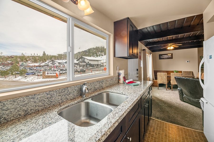 Steps away from Bear Mountain Resort, ideal for skiing, biking, and golfing! Bears Eye View offers you the chance to simply step out the front door and be at the chair lifts. Nestled conveniently in the sought-after Moonridge area, it stands just opposite the ski resort, and a brief stroll will take you to the NEW Alpine Zoo! This exquisite two-story home is your ultimate mountain escape, complete with stunning slope views!