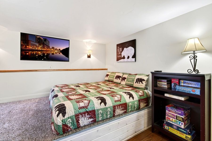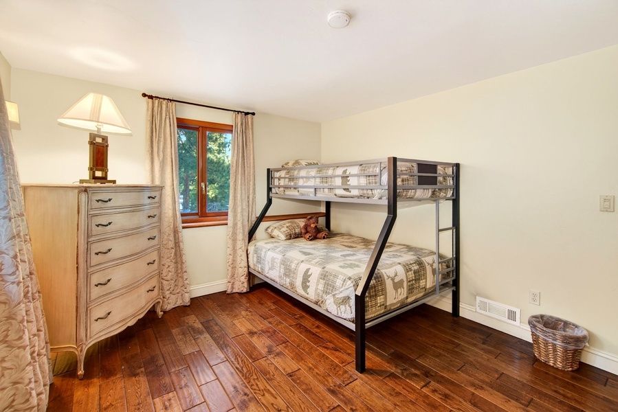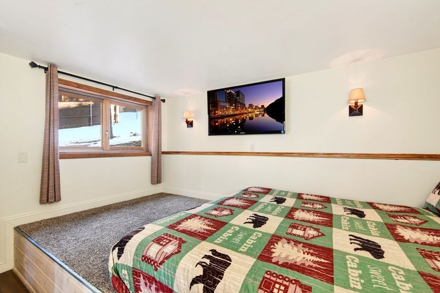 ROOMS & BEDS - 4 bedroom, 2 bath. Upstairs first bedroom has a king bed and deck. Upstairs second bedroom has a queen bed, TV, and private bath. Downstairs third bedroom has bunk beds. Downstairs fourth bedroom has a king bed and TV. Living room has a sleeper sofa. Extra blankets and pillows are available.