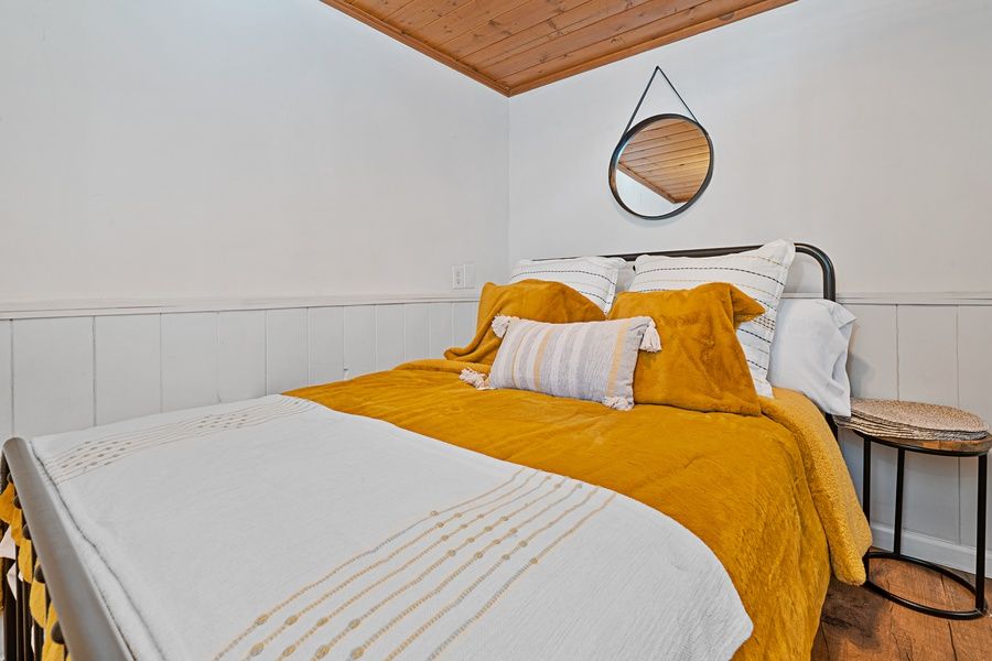 ROOMS & BEDS - 1 bedroom, 1 bath. Downstairs bedroom has a queen bed. Loft with 2 twin beds. Living room has a sleeper sofa. Extra blankets and pillows are available.