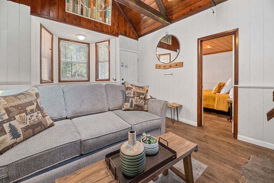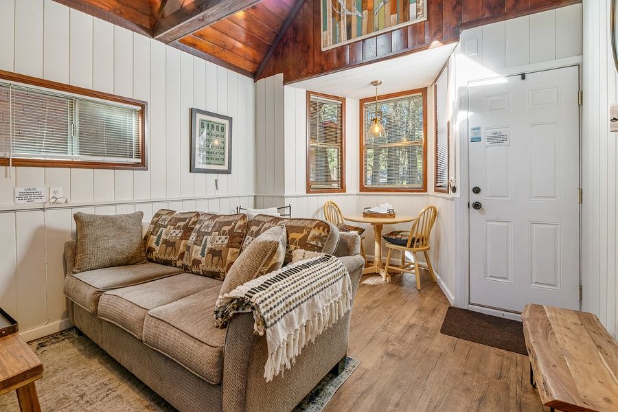 Small but mighty restored vintage cabin was built in 1928 and recently updated with all the modern comforts you will need in your vacation home! Features skylights providing plenty of natural light, views of pine trees, and perfect for stargazing. Just a few short minutes to both ski resorts, Snow Play, Big Bear Lake, golf course, and shopping. Close to National Forest hiking trails. This home does have a steep staircase in the home and you must be cautious. Please be careful with small children.
