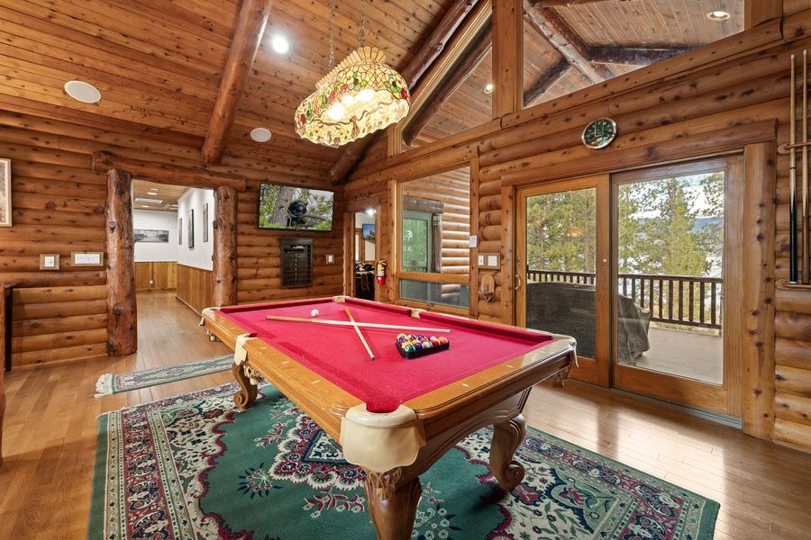 AMENITIES - Game room with pool table. Cinema room with surround sound. Board games and card games. TVs with streaming apps and fast WiFi. Relax near the cozy fireplaces. Laundry room with side-by-side washer/dryer.