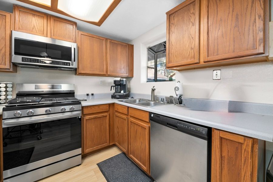 KITCHEN - Granite countertops, stainless steel appliances, stove/oven, double door refrigerator with water and ice dispenser, dishwasher, microwave, blender, toaster, coffee maker, crockpot, rice cooker, dishes, pots/pans, spices, and more.
