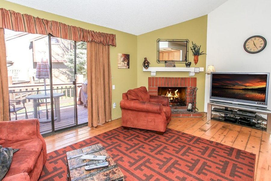 LIVING SPACE - Spacious 1300+ sq ft home with living room, dining area, a smart TV, a wood burning fireplace, and plenty of comfortable living room seating. Unwind in the cozy atmosphere created by a crackling fire after a day of exploration while you gather with loved ones in this mountain home.