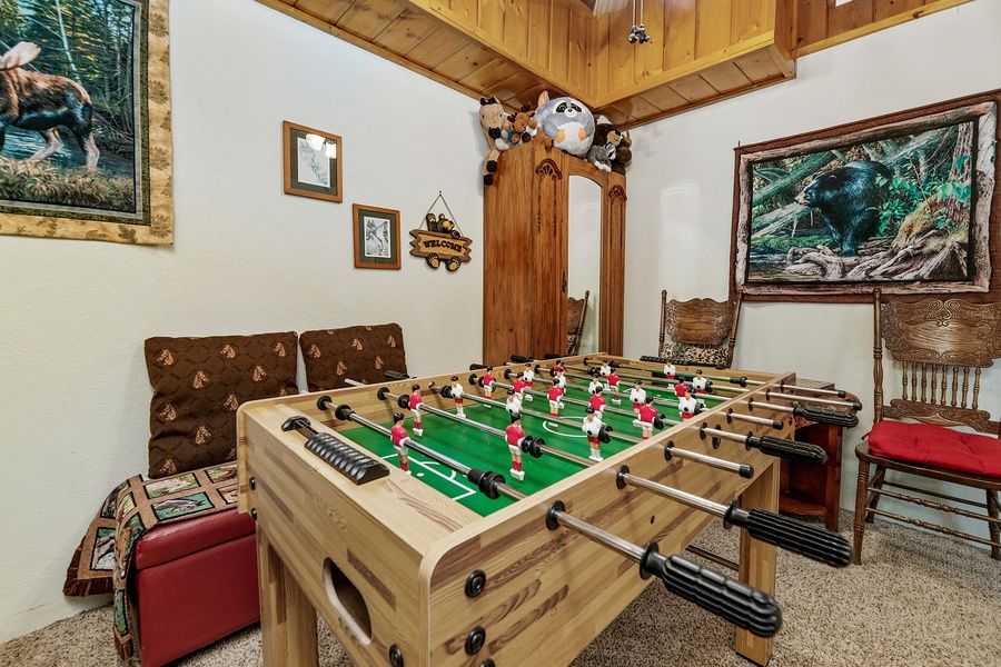 AMENITIES - Game room with foosball table, board games, card games, puzzles and a magnetic chess set! Pool table, cable TV, along with fast WiFi. Relax near the cozy wood burning fireplace. Laundry area with side-by-side washer/dryer.