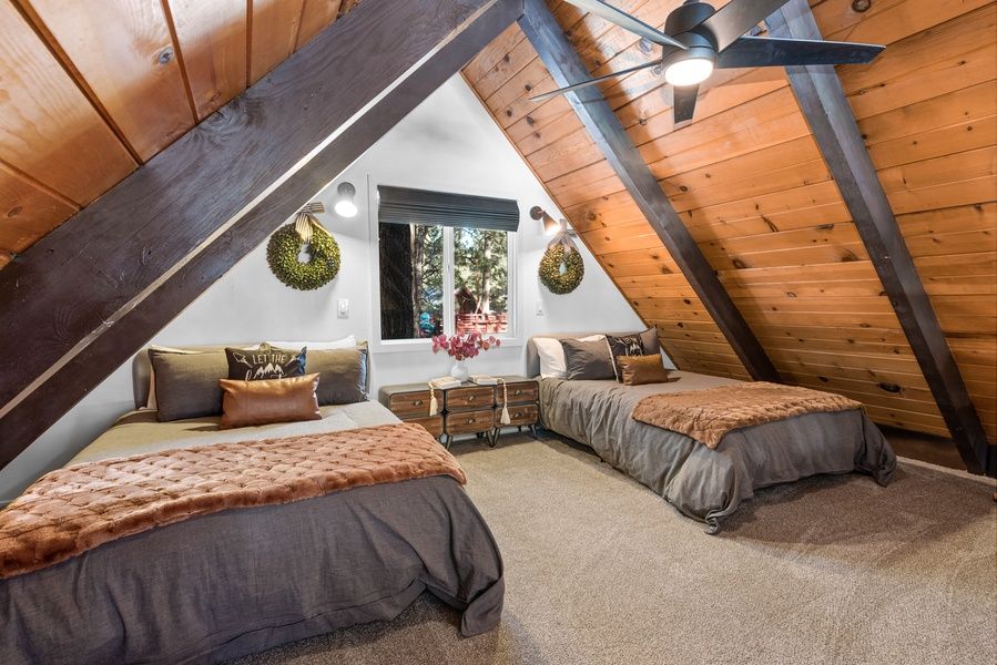 ROOMS & BEDS - 1 bedroom, loft, 1 bath. Downstairs first bedroom has a queen bed. Second bedroom has 2 double beds. Extra blankets and pillows are available.