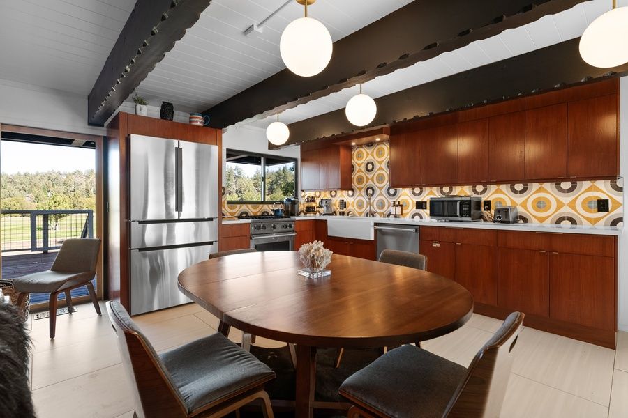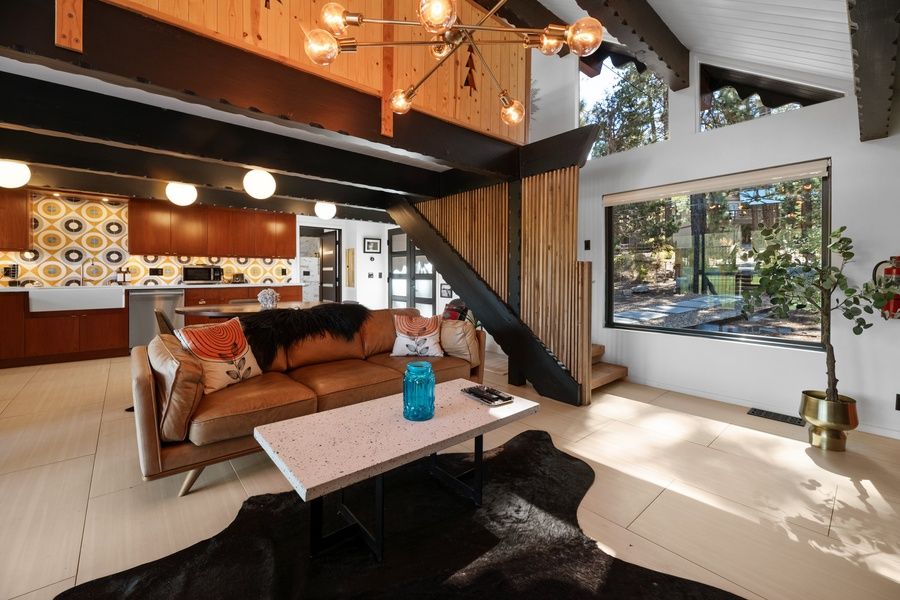 Newly renovated with all new furnishings! Mid-century modern. Located on the 7th hole of the Big Bear Golf Course with astonishing views! Enjoy the morning sun on your spacious back deck overlooking the lush greens and distant mountains. Enjoy nights under the stars from the comfort of the hot tub. Star gaze from all beds from the skylights. The second-floor balcony overlooks all of the Moonridge golf course. There are many hiking trails, the Moonridge shopping district, and the home of the New Moonridge Zoo nearby. Ski season is just around the corner and Bear Mountain Ski Resort is located only a half mile up the road.