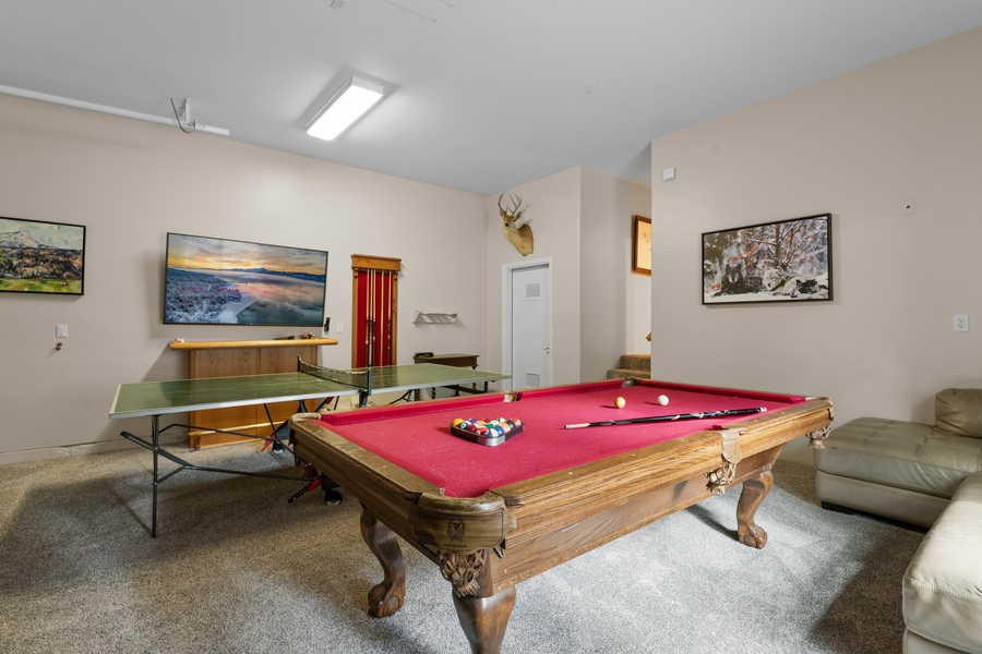 AMENITIES - Game room in the garage with pool table, ping pong table, and air hockey table. Living room with foosball table, board games, and card games. Smart TVs with streaming apps along with fast WiFi. Relax near the cozy gas fireplace. Laundry room with side-by-side washer/dryer.
