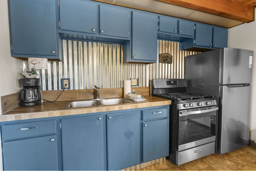 KITCHEN - Stove, oven, refrigerator, microwave, blender, toaster, coffee maker, crockpot, rice cooker, dishes, pots/pans, spices, and more.