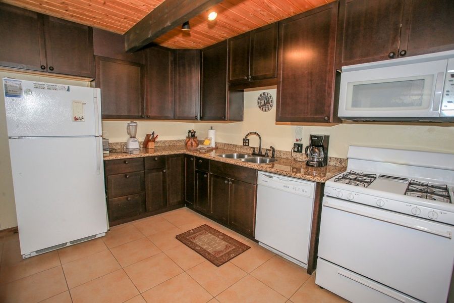KITCHEN - Granite countertops, stove, oven, refrigerator, dishwasher, microwave, blender, toaster, coffee maker, crockpot, rice cooker, dishes, pots/pans, spices, and more.