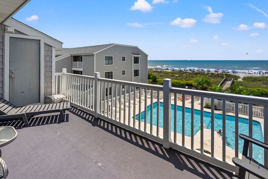 Sea Cloisters II is located in the Ocean Drive/ Cherry Grove section of North Myrtle Beach. You will find this 3-story beach retreat is in a secluded setting and is a perfect place for couples and families to relax and play or just lounge by the ocean front pool. This third floor walk-up 2 bedroom / 2 bath ocean view condo features a fully equipped kitchen, DW, washer & dryer, WiFi, and private open sundeck with a view of the pool and beach. Family attractions, golf & miniature golf, amusement park, water sports & fishing are all in close proximity to the Sea Cloisters. We rent strictly to families and mature persons over the age of 24. McMillan Real Estate, Inc cannot rent to teenage or college age groups, even if accompanied by an older chaperone. House party groups are NOT allowed. Should a house party attempt to occupy a property, they will be denied entrance or evicted, with no refund. Properties are privately owned and reflect the individual tastes of the owner. Saturday to Saturday - Weekly Rentals Only. Trip Insurance available for an additional fee. No Smoking allowed in Unit, balcony, or on either side of entrance. No Pets, Boats, Motorcycles, Golf Carts, Trailers, or RV's allowed. No Elevator.