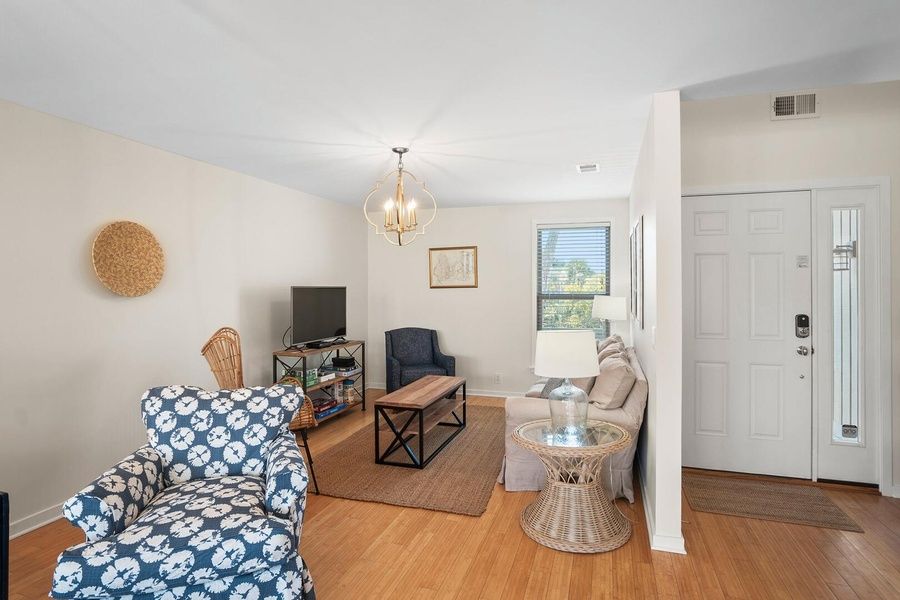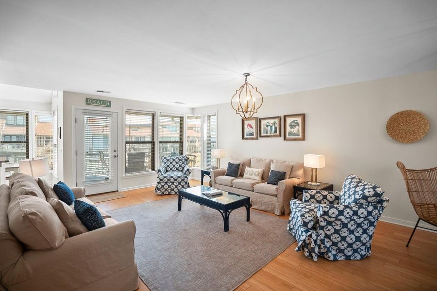 Stunning centrally located condo, this John Fripp Phase 3 villa has beautiful views of the Atlantic Ocean. Three good sized bedrooms each with its own bathroom. Two bedrooms downstairs and the one bedroom upstairs. Newly renovated kitchen with up to date counter tops and cabinets. Well equipped with most of what you need to make your favorite meals. The deck has a a gas grill, along with a table and 4 chairs, where you no doubt will enjoy taking in the fresh ocean air and sights. This villa has 4 TV's with a DVR in the living room, WiFi, and Comcast Cable.