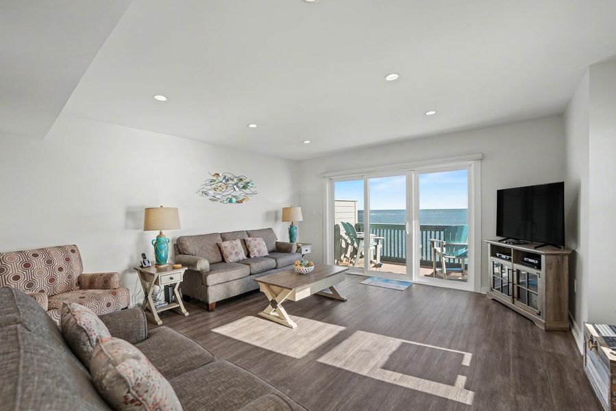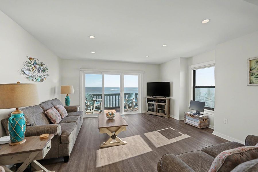 637 New Haven, an end unit, offers amazing ocean views from every room. Features include Wi-Fi, all new appliances, and new furniture. Including two XL twin beds, this home has a maximum capacity of 4 people. Just outside is a lovely sitting area to enjoy a book, sip some coffee, or to just take in all the nature around. Inside you will enjoy amazing views from every room. Located on the northeast tip of Fripp Island where the Atlantic Ocean and Fripp Inlet meet, you will be able to watch the movement of dolphin, pelicans, heron, and egrets from inside this spacious villa or while relaxing on the private balcony. This unit is well decorated with comfortable beds, an eat in kitchen, and has the most spectacular views on Fripp Island from all rooms. The Master Bedroom, along with it's expansive view of the Atlantic, has a most comfortable king size bed, and a 40 inch flat screen TV. The 2nd bedroom has 2 XL twin beds. Each bedroom has it's own private full bath. The family room also has a 40 inch flat screen TV.