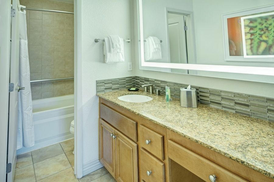 With 625 square feet of space, the one bedroom condo suite is spacious for the up to four guests it can accommodate. Luxury is a strong focus of the resort, as the condo suite is equipped with a full kitchen with full-size appliances, granite countertops and cookware. The full kitchen with a well-appointed dining room, can help add affordability to a vacation where expenses can add up quickly. The king bed also has a plush pillow-top to make your nights rest as enjoyable as possible.