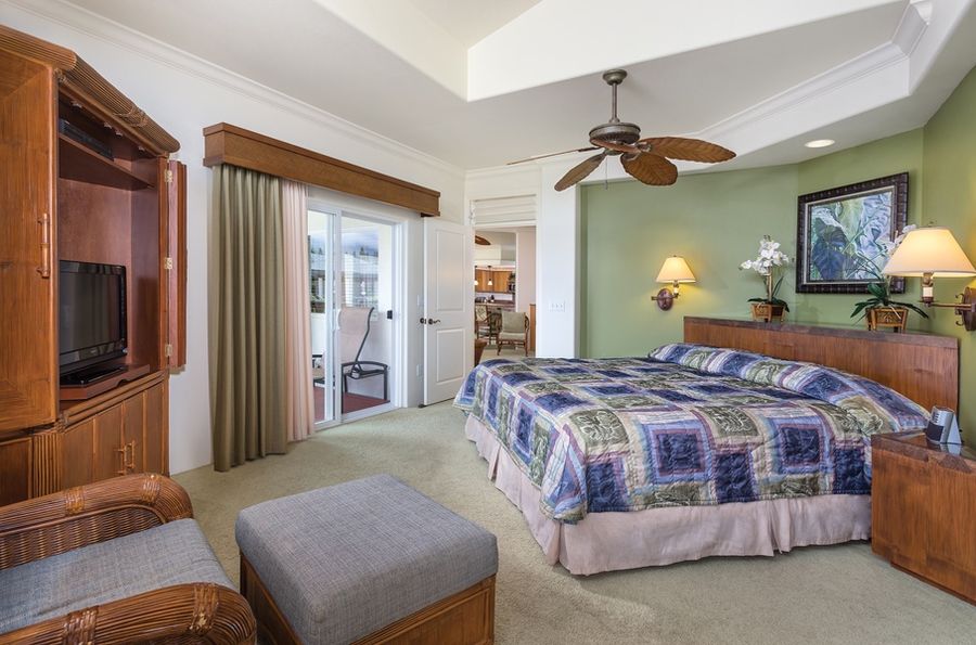 These tastefully decorated One-Bedroom suites are a pleasure to return to after a day of Kauai sightseeing. A master bedroom features one king or one queen bed and a separate living room boasts a sleeper sofa with cable television and DVD player. You'll also enjoy a washer and dryer, full kitchen with oven, stove, refrigerator, and dishwasher, and balcony, which provides spectacular views of both mountains and the ocean. One-Bedroom suites provide 871 square feet of space and can accommodate up to four guests.