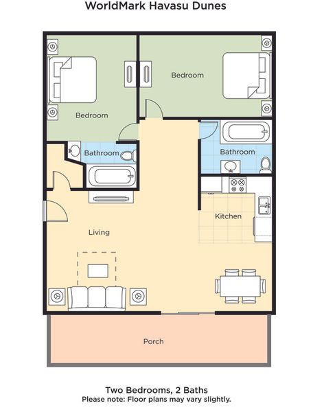 Havasu Dunes Resort features unforgettable comfort and conveniences making you want to keep coming back year after year. Experience all of our well-appreciated amenities like plush bedding and a full or partial kitchen. You will have the pleasant option of cooking in your vacation rental, leaving the worrying of dining out, out of the question! Access to Lake Havasu's shimmering shores and action-packed water sport activities are just minutes away. Lake Havasu is a great place for the whole family to enjoy! At the Lake Havasu State Park there are plenty of outdoor activities to do such as boating, picnics, swimming and sunbathing on the shores of the lake waters. Visit Lake Havasu's London Bridge and replica lighthouses that are the city icons. The Havasu National Wildlife Refuge is just a few miles away and is filled with regional flora and fauna. Shopping is abundant at Island Fashion Mall or Historic Main Street on McCulloch Blvd. A golfer's delight is found at the London Bridge Golf Club. These 1 Bedroom suites are the perfect retreat for those seeking quiet relaxation after a full day out on Lake Havasu's warm waters. Enjoy space for up to six guests as well as 2 private bedrooms, pull-out sleeper sofa and a full kitchen. Keep the refrigerator stocked with cold water and drinks, or create a healthy snack for you and the kids without having to spend extra time dining out. Amenities: *Private Bedroom with King Bed *Private Bedroom with Queen Bed *Queen-Size Sleeper Sofa *Full Kitchen with coffee and tea maker, microwave, mini refrigerator, toaster, flatware, stove and oven. *Living area with flat screen TV *Convenient Comforts include cable TV, hairdryer, AM/FM alarm clock, iron and ironing board *Free Wifi *Balcony/Patio RESORT INFORMATION Make your Lake Havasu travels absolutely unforgettable at Havasu Dunes Resort. With three huge outdoor swimming pools, it is the perfect place to soak up the 300 days of cloudless, sunny Lake Havasu weather, while the hot tub is perfect for a little afternoon down time. Plan a family reunion, group event or special occasion with ease here, while firing up the grill and spending the full day partying out in the BBQ/Picnic area. Please note that daily housekeeping is not included and may be added for a nominal fee. This resort has no elevators. The front desk hours at this resort have been updated to 7 a.m.–10 p.m. Other amenities and services offered include: *3 Outdoor Swimming Pools (Pool and hot tub hours are 7 a.m.-10 p.m. Outdoor pools are heated and open year-round. Children who are not fully potty trained must wear swim diapers. There are no lifeguards on duty. Please refer to posted pool signage for more information.) *Hot Tub *BBQ/Picnic Area *Fitness Center *Racquetball Courts Please Note: *Check in after 4:00 PM | Check out by 10:00 AM * Primary Guest must be at least 21 years old to check in *This property requires a $250 refundable security deposit upon arrival. Credit card only. *Only the person listed on the reservation will be allowed to check in. *We are unable to change or add additional names. *This is a non-smoking resort *This resort has no elevators. Service animals that are trained to work or perform tasks for the benefit of an individual with a disability are welcome. Wyndham - Havasu Dunes Resort has engaged VacayHome to ensure this listing contains all the information you need and that it is easy for you to book via search engines & online channels. VacayHome is connected directly to the property management system used by Wyndham - Havasu Dunes Resort which ensures that availability & rates are up-to-date & accurate. When you book, VacayHome processes payment on behalf of Wyndham - Havasu Dunes Resort and a charge will appear on your statement as "VacayHome". VacayHome will send you a confirmation e-mail that contains all the information you need to prepare for your vacation including arrival instructions. VacayHome has a 24 x 7 team to assist you with any questions or concerns you may have prior to arrival. To access VacayHome, obtain the customer support telephone number or read FAQs, please click on the links at the bottom of this page.