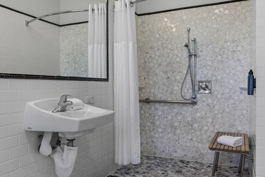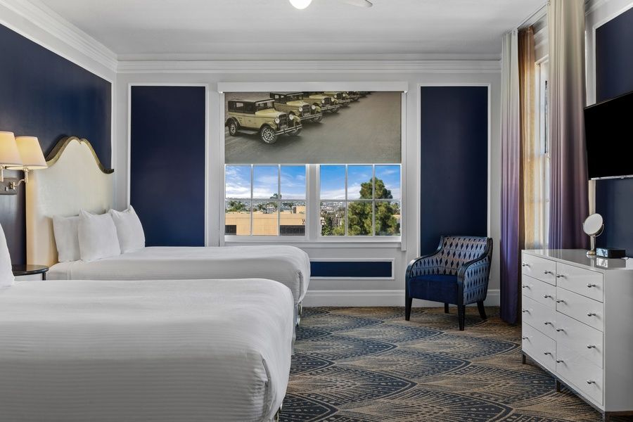 The studio suite comes well equipped, at 535 square feet, with space for up to four guests. Some of the features of the suite are high ceilings, classic furnishings and a historic ambiance. Guests have their choice between either a king bed or two queen beds. The room also has two twin sofa sleepers, and a bathroom with a walk-in shower. Technologically speaking, the suite is impressive as well with a 42" flat-screen TV and electronic blackout shades.
