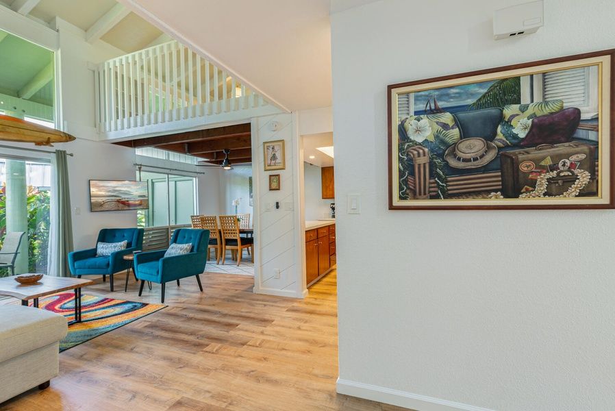 This is a two-story home. You must be able to go up and down one flight of stairs to access the loft bedroom, sitting area, and upstairs lanai.