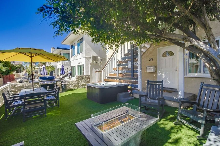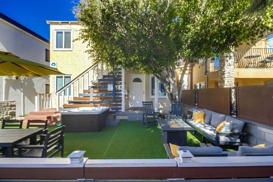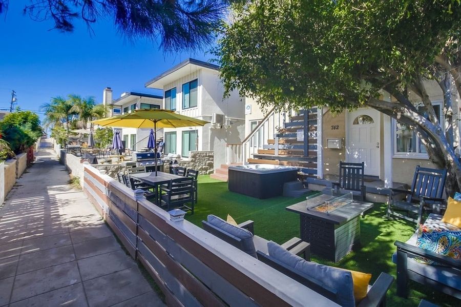 Escape to Mission Beach in the heart of all the action! The Big House is sure to give you a true coastal experience that will leave you feeling like a local...salty breezes and all the activity and relaxation a true vacationer is looking for. Sitting just a stones throw away from the popular Mission Beach boardwalk and you can have your toes in the water within minutes. Just a couple blocks away is the opposite direction is the sandy beaches for Mission Bay. From your own private patio space you can decide to go left to the bay or right to the ocean. From the comforts of this newly renovated and well appointed home you will find a very spacious floorplan for your whole group to enjoy. This is a large two story property and comes with a double car garage. This is a rare find in the beach area and very nice to have so you don't loose time searching for parking! The downstairs living space has 2 bedrooms and 2 bathrooms with a kitchen and living room that sits just off the large outdoor patio space. Upstairs is a larger 3 bedroom 2 bath living space. Upstairs you will find another roomy and bright kitchen and living room. The bonus room sits upstairs over the garage and is a great space to spend quality time together. With a pool table and tv, this room is sure to be one of your favorite areas of the home. The bonus room also sleeps 5 guests with a twin sleeper sofa, twin trundle bed and twin over twin bunk bed. The entire home features new furnishings and decor! Plenty of space and comfortable seating to lounge as a group or be able to retreat from your group and enjoy quiet time. All of the interior is freshly painted with new flooring throughout. Soak up the sun on the front patio space by day and gather around the firepit by night. From reading a book to roasting s'mores or taking a soak in the hot tub, this patio will be a place for creating wonderful memories. A large custom built farm table sits on the patio for dining together as a group. Whatever your desire, The Big House is sure to make your Mission Beach vacation dreams come true. Prime Location When you do decide to venture out and leave your stylish digs, you won't have to travel far to have your toes in the sand. Located just 1/2 block from the waters edge and the Pacific Beach boardwalk that stretches 3 miles to North Pacific Beach. With no shortage on food and beverage choices in the immediate area you can stay close to home of venture a bit further to explore the many more options for shopping, eating and entertainment that Mission Beach has to offer. Within walking distance is the popular Belmont Park which offers endless family fun and the famous Giant Dipper, a historic wooden roller coaster that dates back to 1925. Just North of the home you can explore another highly desired beach community of Pacific Beach. Also nearby is a variety of other local San Diego attractions such as Sea World, Balboa Park and the world famous San Diego Zoo...all within 9 miles or less. If what you are looking for is location, style and relaxation...Casa Azul is your ultimate vacation destination! Friendly, Responsive Host (Who Gives You Your Space) We love giving you the privacy to enjoy your vacation on your own, but we're here to answer any questions you might have. Our goal is to make you and your family love Mission Beach and the beautiful city of San Diego as much as we do! Lots of Amenities: We're pleased to be able to offer our guests the following amenities: Bonus room with pool table Hot tub Double Car Garage Washer/Dryer 5 tvs High-Speed Internet BBQ Grill Large private patio with farm table & lounge seating with fire pit. Mission Sands has engaged VacayHome to ensure this listing contains all the information you need and that it is easy for you to book via search engines & online channels. VacayHome is connected directly to the property management system used by Mission Sands which ensures that availability & rates are up-to-date & accurate. When you book, VacayHome processes payment on behalf of Mission Sands and a charge will appear on your statement as "VacayHome". VacayHome will send you a confirmation e-mail that contains all the information you need to prepare for your vacation including arrival instructions. VacayHome has a 24 x 7 team to assist you with any questions or concerns you may have prior to arrival. To access VacayHome, obtain the customer support telephone number or read FAQs, please click on the links at the bottom of this page.