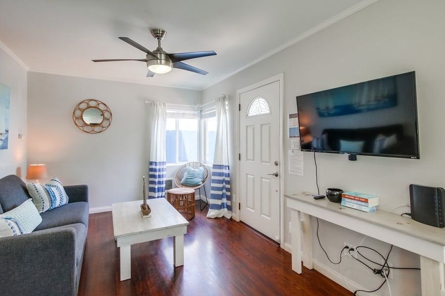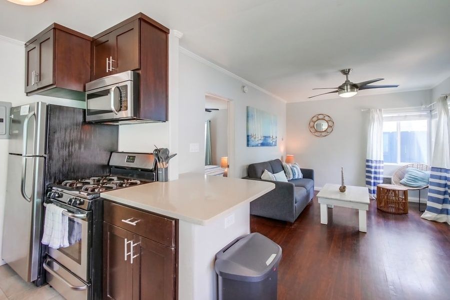 Tucked away just a block from the bay and roughly 1 block to the ocean is our newly remodeled Manhattan Shores condo. This ground floor unit has a shared patio with a BBQ. Inside you will find a renovated kitchen with top of the line appliances and bar seating for 4. The unit is equipped with a Stackable washer and dryer and full bathroom. The Master bedroom has a king bed, and there is also a sleeper futon in the living room. Plus this unit come with one small parking spot in the garage!