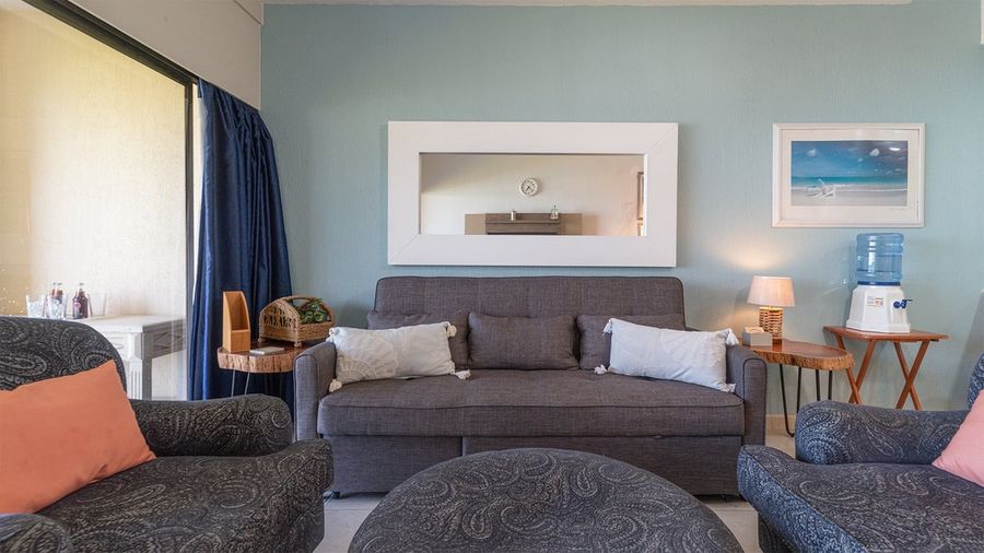 1 bedroom with King bed in the bedroom, and a fold-out sofa in the living room. 1 to 4 guests are comfortable in Sonoran Sea East 210.