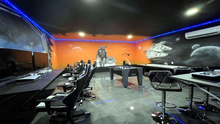 ★ AC-ed Game Room with PS5, XBOX series s, arcade air hockey, & foosball table