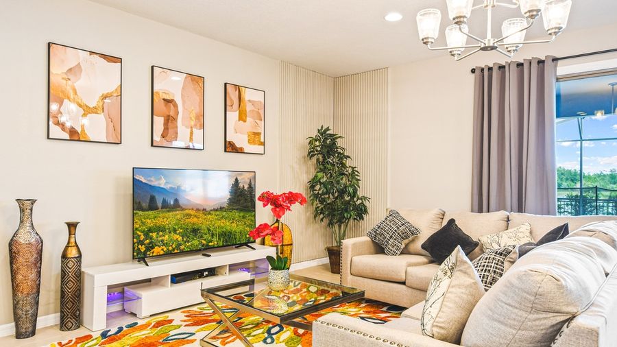 - Spacious seating area with plush sofas and flat screen TV