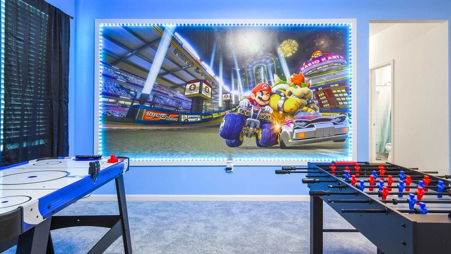 Here you will also find a second living space with an air hockey table and a foosball table.