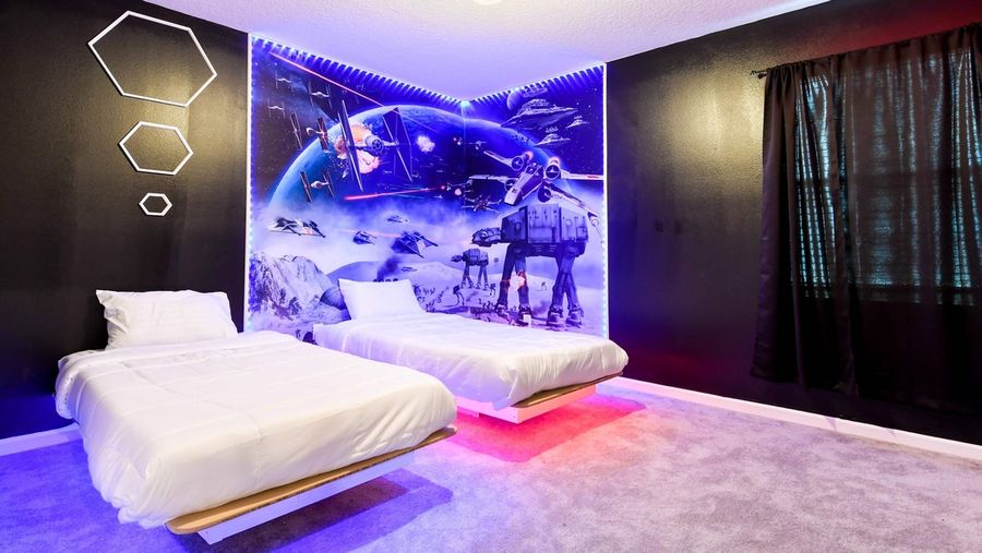 - Bedroom 8: 2 twin beds with en-suite bathroom (Star Wars) (upstairs)