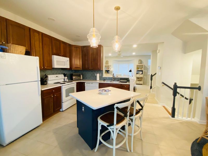 This spacious Rehoboth Crossing townhome is the perfect place to spend your Summer! Completely renovated and newly furnished in 2021! Featuring a private 1st floor ensuite bedroom with patio, the second floor boasts a spacious living room, open kitchen, dining area and relaxing, light-filled sun room and deck with covered roof and ceiling fan. There are three bedrooms on the 3rd floor including an ensuite with a private sun deck. Heated garage gym with elliptical, weight bench and free weights. Rehoboth Crossing has a great Community Pool, Exercise Room and direct Bike Trail access. Located east of Coastal Highway with easy access to Tanger Outlets and Rehoboth Beach and Boardwalk.