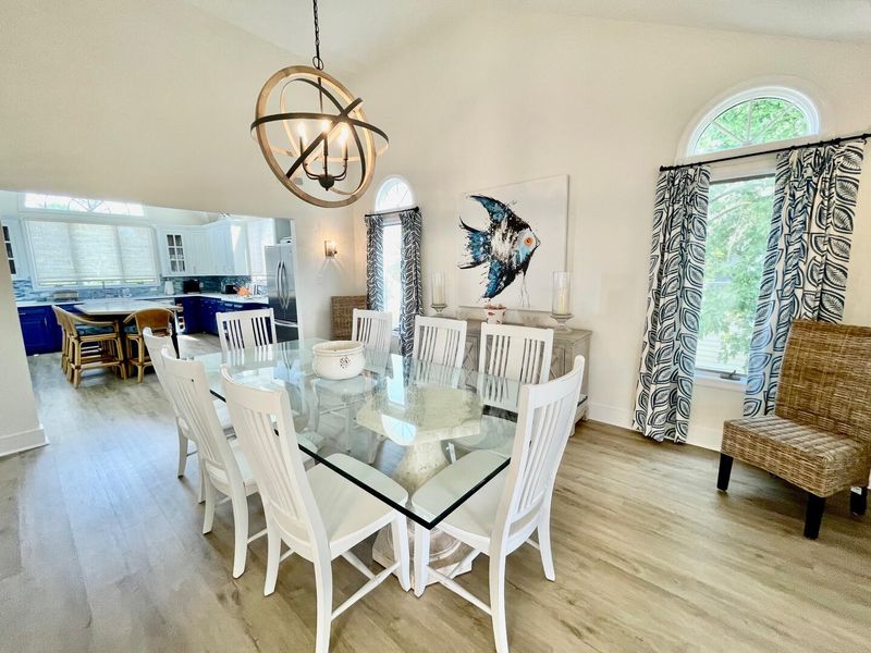 Located in the magnificent community of North Shores this beautifully renovated home boasts 6 bedrooms, including 3 en suite, a spacious open living room, dining room, relaxing screened porch overlooking the marina, multiple sun decks, cozy den, 2 outdoor showers, 2 TV's with cable and 5 TV's with streaming, access to the private beach, community pool and tennis courts and a electric car charger for your use!