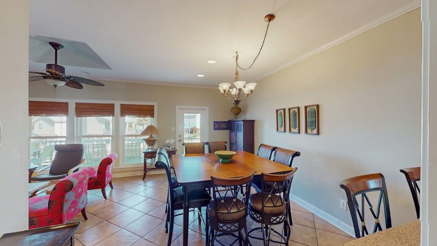 With 5 televisions and wireless internet throughout the home, you can stay connected to your inbox, catch all your favorite podcasts, and enjoy movie time with the family. There is also a fishing dock two doors down as well as a sandy swimming area. Bring your kayak. The house is on an inlet that leads to the lagoon. Walk right out the back door and put in!