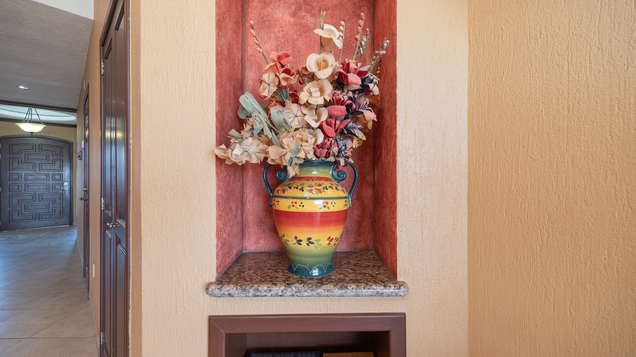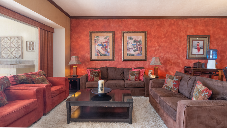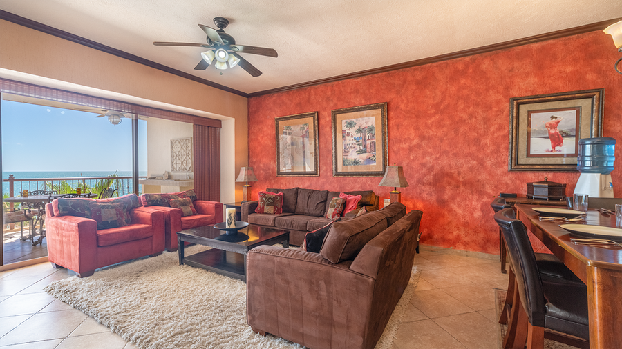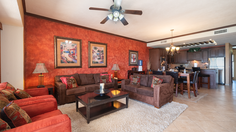 Welcome to paradise. This 2 bedroom, 2bath suite is located on the 4th floor of the beautiful Sonoran Sky Resort. This suite can easily accommodate 4 guests. This suite is fully equipped to make your stay simply wonderful. There are ceiling fans throughout and the color scheme is simply beautiful. The living room area is subtle earth tones. The ceiling is white and the walls are terracotta colors, there is dark ceiling molding around the entire unit. There is a dark brown sofa and love seat that gives contrast to two single couch chairs with complimenting throw pillows in pink, browns, and gray. There is a rug under the sofa that is light gray. Behind the sofa are two picture frames and across from the sofa is an entertainment center that includes a big flat-screen TV, DVD, and Stereo. There is also a sofa sleeper. What more could you ask for! There are 2 beautiful lamps on the end tables next to the couch that will give bright to this area. In addition, there is a large coffee table. The sofa is arranged so that you can relax and gaze out the patio door at the sunset, or simply relax and watch TV. The kitchen has all stainless steel appliances with a built-in oven and microwave. Everything you need to prepare a gourmet meal is in this well-equipped kitchen. The wet bar also serves as a cozy breakfast bar and easily seats 2. The countertops and backsplash are all granite and there is plenty of cupboard space and prep space. The bar stools are wood and have leather seats. The dining area has a matching buffet and square table which seats six. The chairs are high backs with dark leather seats. The walls are adorned with beautiful, bright color paintings and metal art designs. The master bedroom has a beautiful King size bed set with matching headboard, footboard, 2-night tables and a six-drawer dresser. There is also a white single couch chaise that can be used to read a book or relax and hear the ocean. The bedding is a pearl white color with matching shams. Next to the bed is a small gray rug. There is a big flat-screen TV on top of the dresser. You will love the patio door that opens onto the terrace. The master bathroom has a double sink vanity with a large mirror and plenty of lighting. There is a tile, built in shower with glass door enclosure. Across from the shower is a deep Jacuzzi bathtub. There is beautiful tile work throughout the bathroom area. The guest bedroom has a queen size bed with dark brown with a wood headboard. There are a matching 6-drawer dresser and 2 two-drawer night tables. On top of the dresser is a flat-screen TV. There is also a lovely area rug under the bed, which enhances the bedding, which is a white with copper color with matching charms. The guest bath has a single sink vanity and a lovely shower. You can entertain on the terrace or just relax. There is a large wrought iron table with a marble top that seats 4, a chaise lounge chairs and a patio sofa. The views from the 4th floor are amazing. Bring your binoculars because you can see all the way to Bird Island and Las Conchas from this elevation. The most magnificent view, however, is the Rocky Point sunset. As the sun goes down in shades of yellow and orange it slowly changes to the most incredible shades of blue. Relax and enjoy your stay. Charcoal barbeques are available on the third floor near the playground area. Don't miss the opportunity to enjoy this gorgeous property at the Sonoran Sky Resort. There is no private Internet only on Lobby. NOTE: The balcony BBQ do not work, there is a designated area on the 3rd floor for the use of charcoal grills and playground for small children. (Charcoal is not included, for sale at convenience store). Casago - Rocky Point has engaged VacayHome to ensure this listing contains all the information you need and that it is easy for you to book via search engines & online channels. VacayHome is connected directly to the property management system used by Casago - Rocky Point which ensures that availability & rates are up-to-date & accurate. When you book, VacayHome processes payment on behalf of Casago - Rocky Point and a charge will appear on your statement as "VacayHome". VacayHome will send you a confirmation e-mail that contains all the information you need to prepare for your vacation including arrival instructions. VacayHome has a 24 x 7 team to assist you with any questions or concerns you may have prior to arrival. To access VacayHome, obtain the customer support telephone number or read FAQs, please click on the links at the bottom of this page.